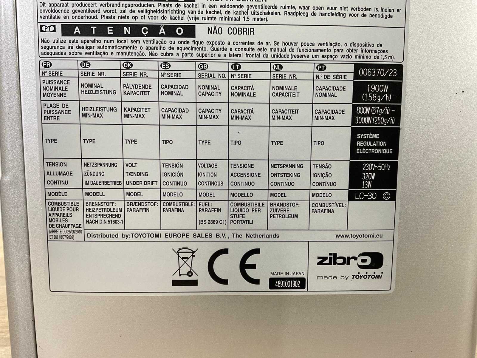 Merk: Zibro Model: LC30t Lengte: 27cm Breedte: 34cm Hoogte: 43cm