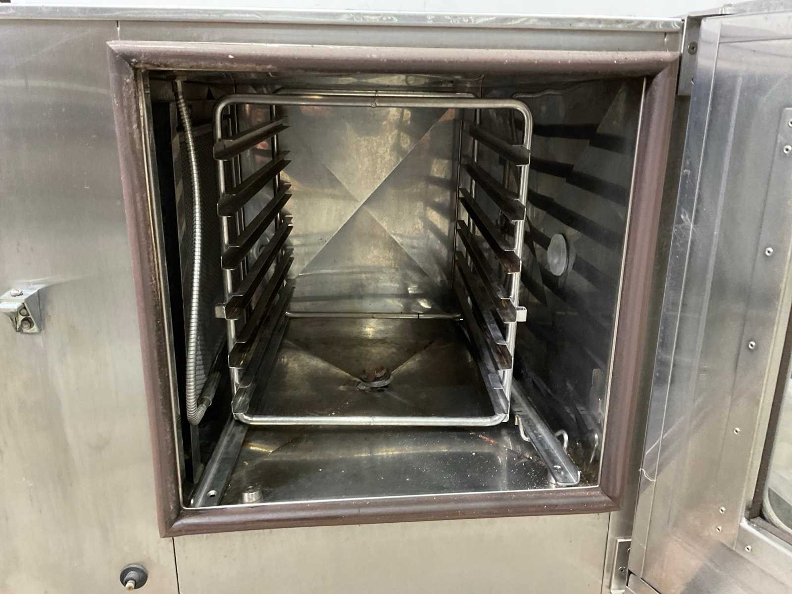 Met rvs tafel circa 90 cm breed; 80 cm lang; 88 cm hoog Merk: Rational Type: CM 6 Totale afmeting L: 720mm Totale afmeting Breedte: 900mm Totale afmeting Hoogte: 670mm Rvs: true Aansluiting: 380V