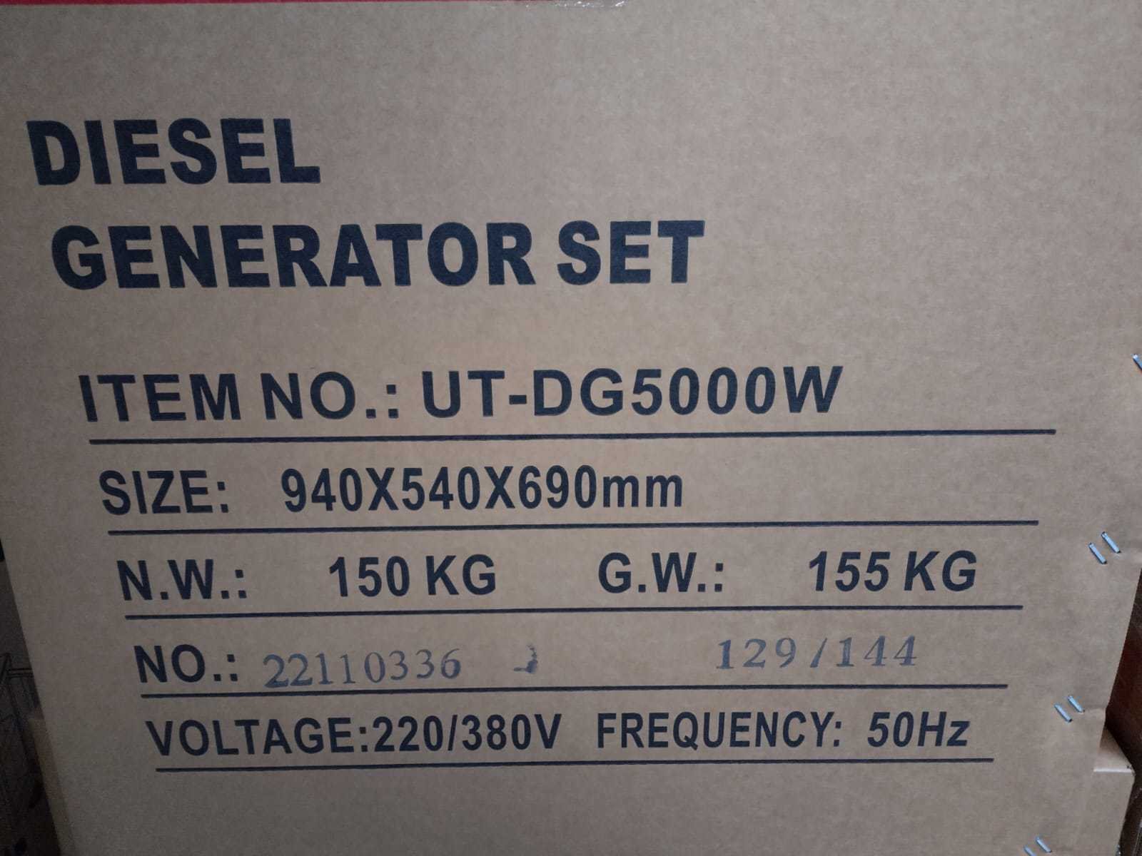 Ongebruikt; 3 phase generator; 2x 220 volt en 1x 380 volt; 940x540x690mm Merk: Ultra Toolz Type: UT-DG5000W Capaciteit.: 5kVA Diesel: true Mobiel: true Machinegewicht: 150kg