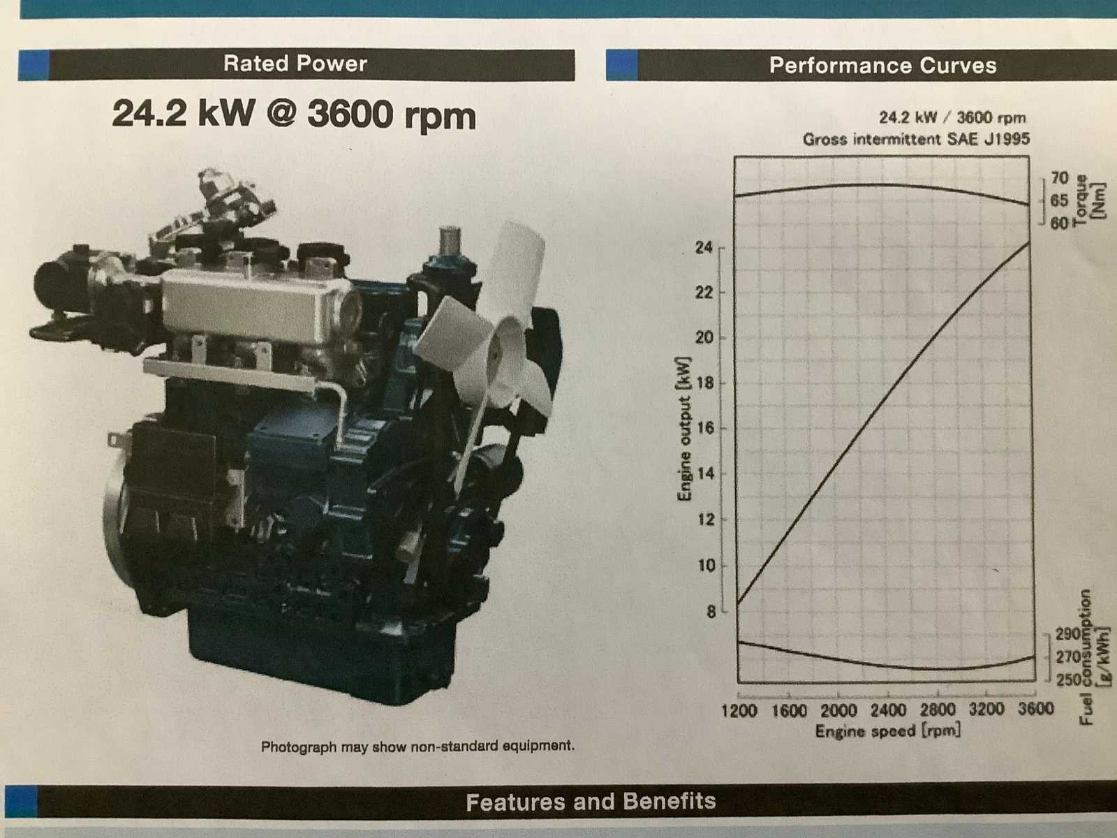 Afmetingen zijn circa; ongebruikt; verticaal, watergekoeld 4 cycles; 3 cilinder; 3600 rpm; 24,2 kw; epa fase 3; eu stage v Merk: Kubota Model: WG972-G-EF01 Product type: 3 cilinder Gewicht: 74kg Lengte: 50cm Breedte: 40cm Hoogte: 55cm