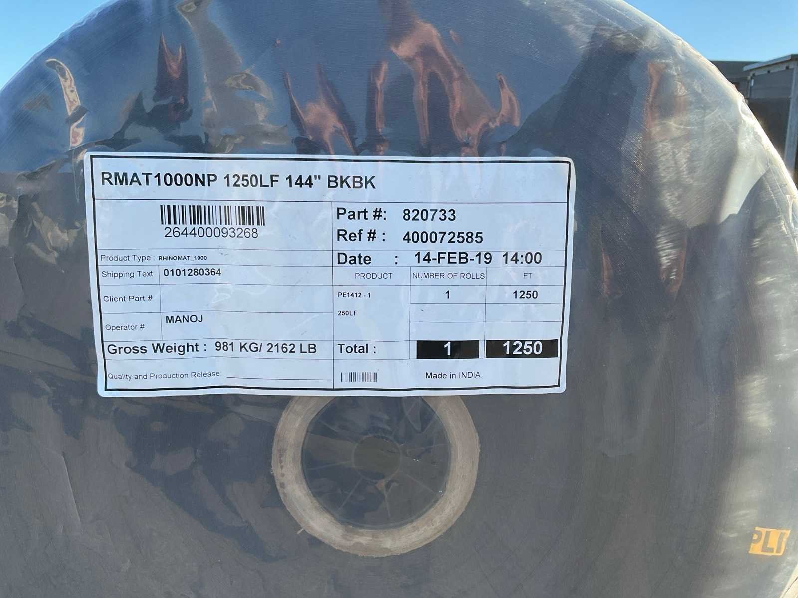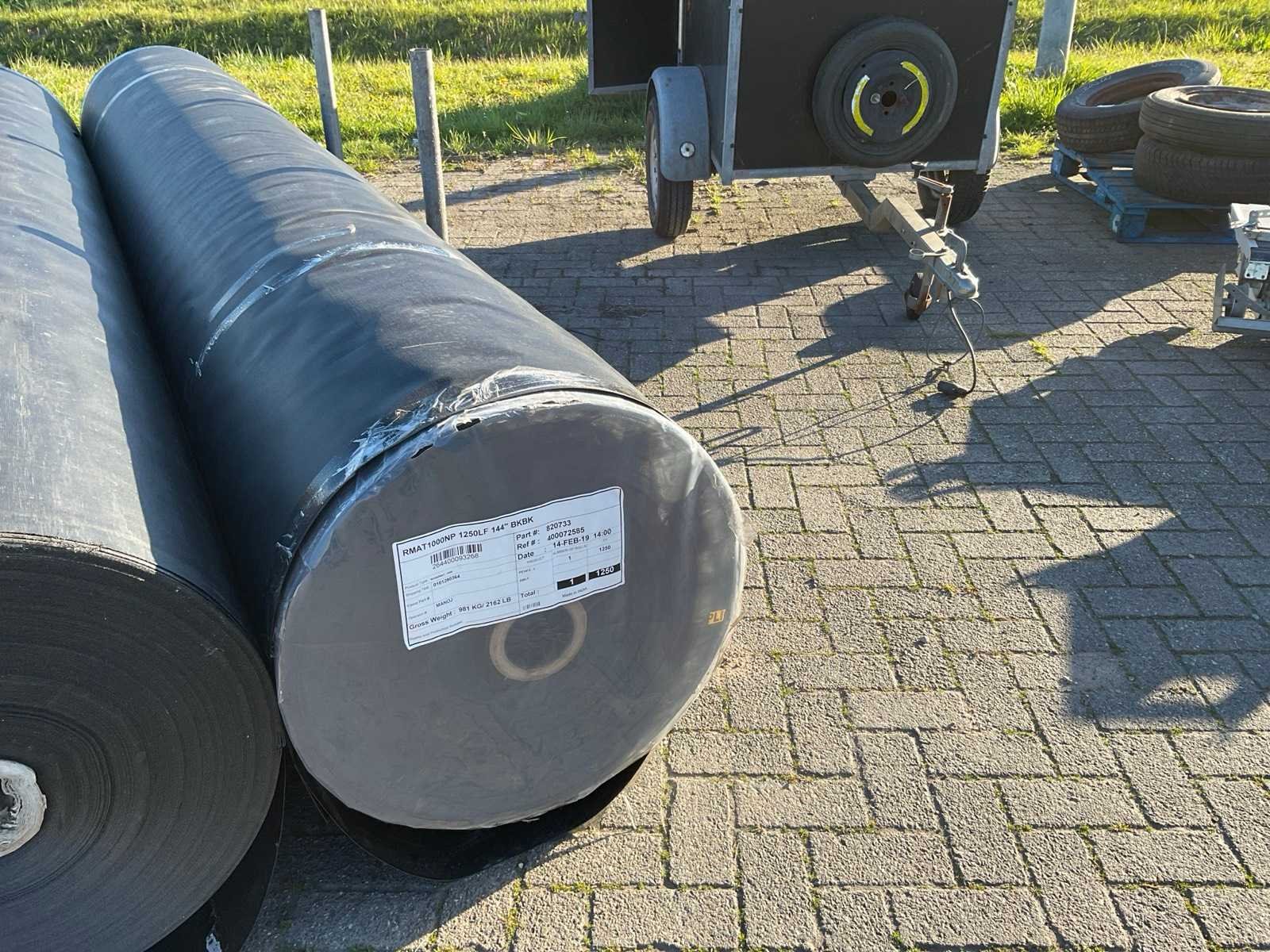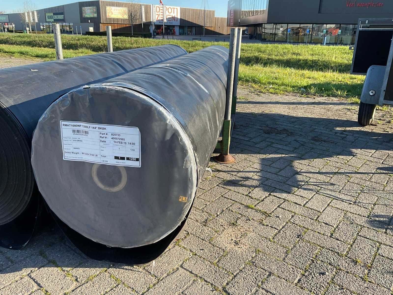 Circa 380 meter op rol, gewicht van de rol is circa 982 kg, RhinoMat® 1000 versterkte composiet geomembraan is ideaal voor afdichtingstoepassingen zoals landbouw, aquacultuur, mijnbouw en energie, secundaire opvang, afvalwaterlagunes en afdekkingen van stortplaatsen. Toepassingen voor waterretentie omvatten vijvers op golfbanen, regenwaterbeheer, irrigatieopslag, kanaalbekleding en reservoirs voor drinkwater. De flexibele constructie maakt efficiënte verbinding van een breed scala aan paneelvormen en -afmetingen mogelijk. Prefabricage in de fabriek vermindert de benodigde lastijd op locatie en beperkt tijdrovende destructieve veldtesten. Het maakt ook maatwerkpanelen mogelijk om de installatie te versnellen. Een geweven kern van hoge dichtheid polyethyleen (HDPE) met hoge sterkte zorgt voor uitstekende maatvastheid en stabiliteit. De speciaal ontworpen coating van lineair lage dichtheid polyethyleen/lage dichtheid polyethyleen (LLDPE/LDPE) biedt flexibiliteit, chemische bestendigheid en bescherming tegen ultraviolet licht, ozon en oxidatie, exclusief bok Merk: Rhinomat Type: 1000 Bouwjaar: 2019 Totale afmeting Breedte: 3650mm