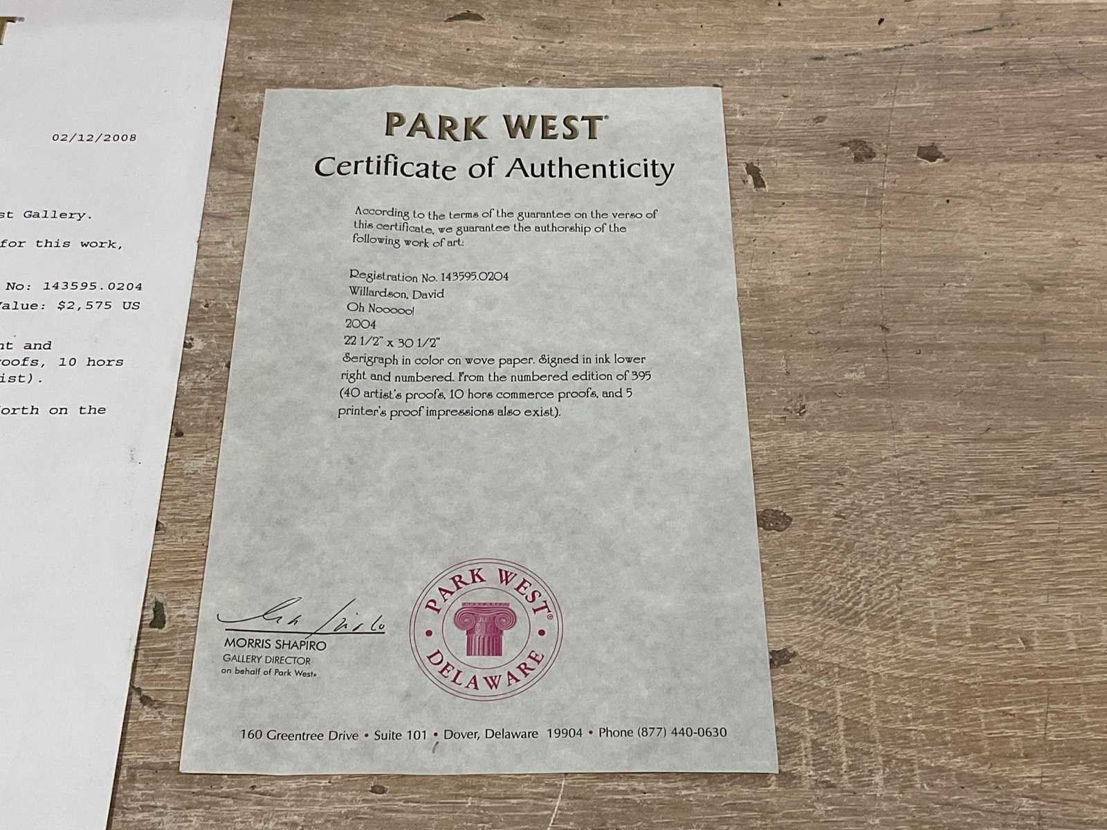 Met Park West certificaat Kunstenaar: David Willardson Titel van werk: Oh Nooooo! Datering: 2004 Hoogte incl. lijst: 94cm Breedte incl. lijst: 114cm Frame: true