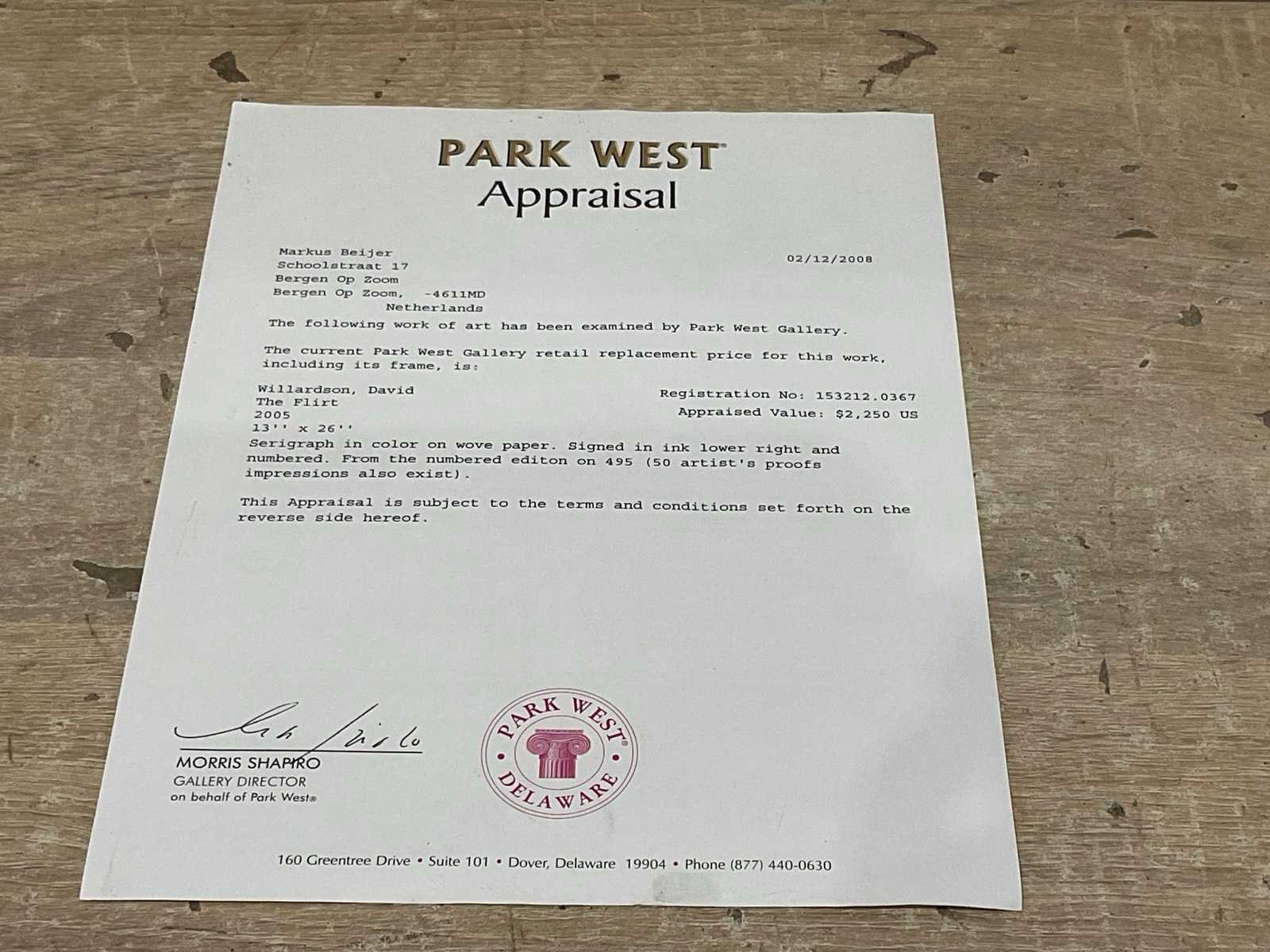Met Park West certificaat Kunstenaar: David Willardson Titel van werk: The Flirt Datering: 2005 Hoogte incl. lijst: 70cm Breedte incl. lijst: 102cm Frame: true