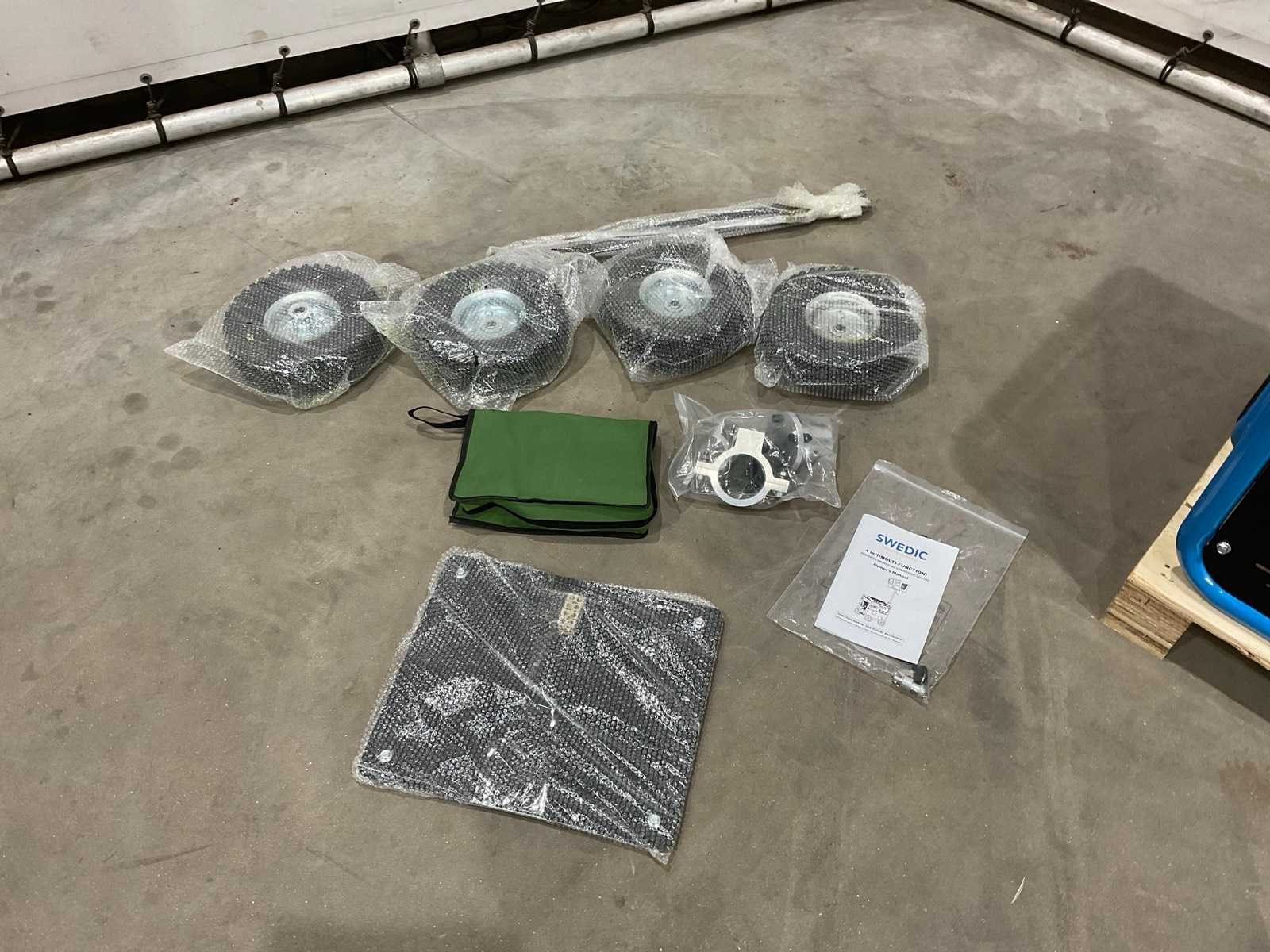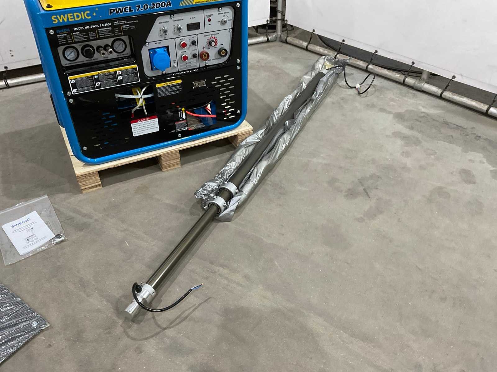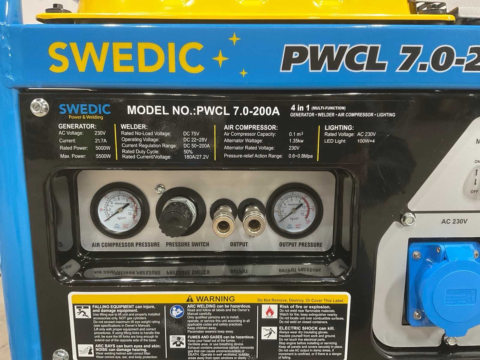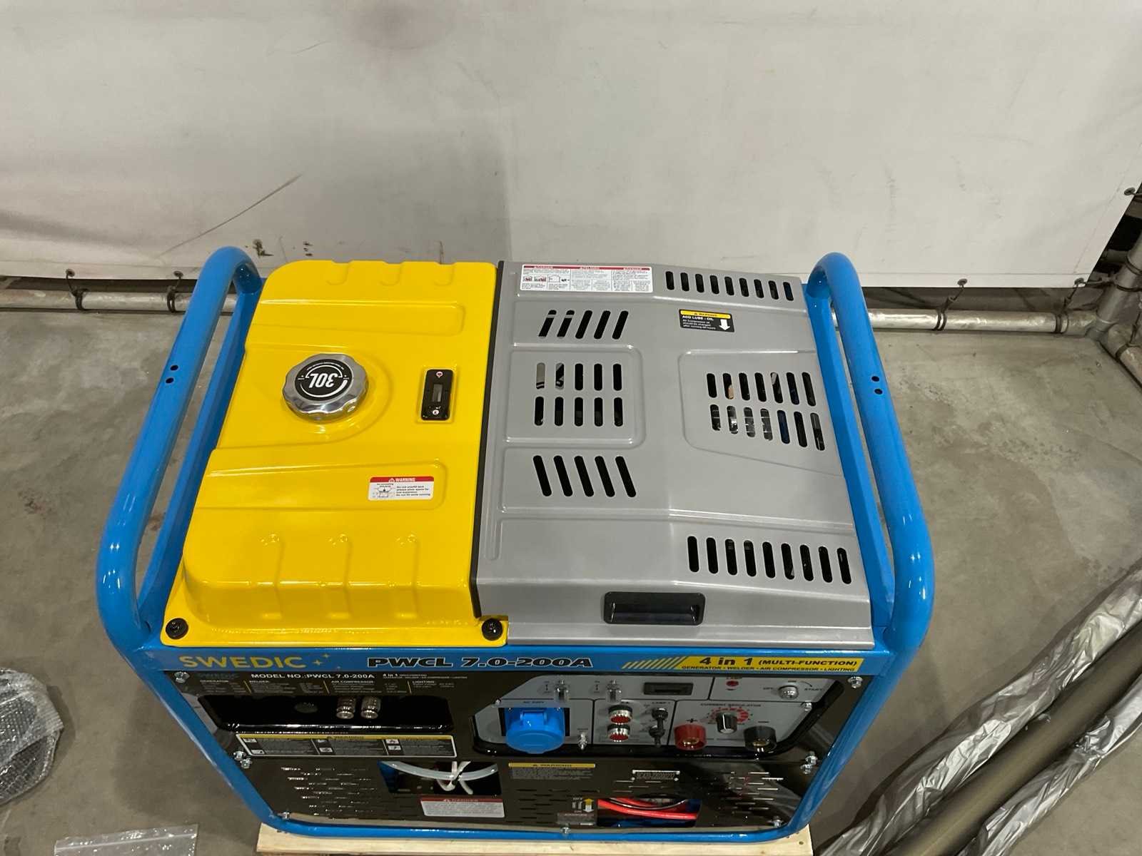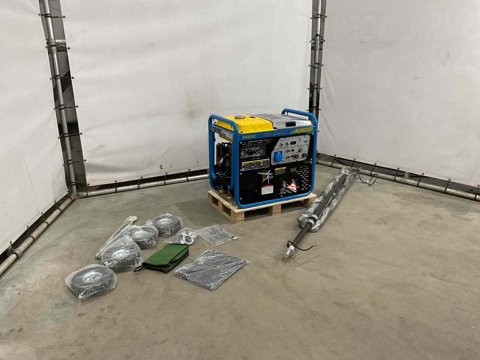 Ongebruikt; zonder lampen Generator, lassen, luchtcompressor. 3 functies op één machine. Breed scala aan toepassingen. Voor DC-lassen en AC-generatoruitgang en luchtcompressor kan AC 5,0 kW gestaag worden afgegeven. MDS-gelijkrichterstructuur, eenvoudig onderhoud en hoog rendement. AVR voor stuurspanning. Gemakkelijke start en laag brandstofverbruik. Compacte structuur voor eenvoudig transport. Tweetraps luchtcompressor voor hoog pneumatisch gereedschap. 20L grote tank voor een hoger rendement van de luchtcompressor. Het kan een 4,0 mm elektrode langdurig lassen. Specificatiesgenerator Nominale spanning: AC 230V Nominaal vermogen: 5000 W Maximaal vermogen: 5500 W Nominale stroom: 21,7A Frequentie: 50 Hz Vermogensfactor: 1,0 Specificaties Lasser Niet-belaste spanning: 75 Lasspanning: 22-28V Stroombereik: 50-200A Nominale inschakelduur: 50% Specificaties Luchtcompressor Capaciteit luchtcompressor: 0,1 m³ Dynamovermogen: 1,35 kW Druk: 115PSI Drukontlastingsactiebereik: 0,6 ~ 0,8 MPa Specificaties Motor Koelsysteem: luchtkoeling Luchtventiel: OHV Ontstekingssysteem: CDI Inhoud brandstoftank: 30 Oliewaarschuwingssysteem: JA Brandstofverbruik: 374 (g/pk.uur) Startmodus: elektrisch/terugslag Merk: Swedic Type: PWCL 7.0-200A Benzine: true Afgelezen urenstand: 0 Machinegewicht: 153kg Totale afmeting L: 850mm Totale afmeting Breedte: 600mm Totale afmeting Hoogte: 780mm