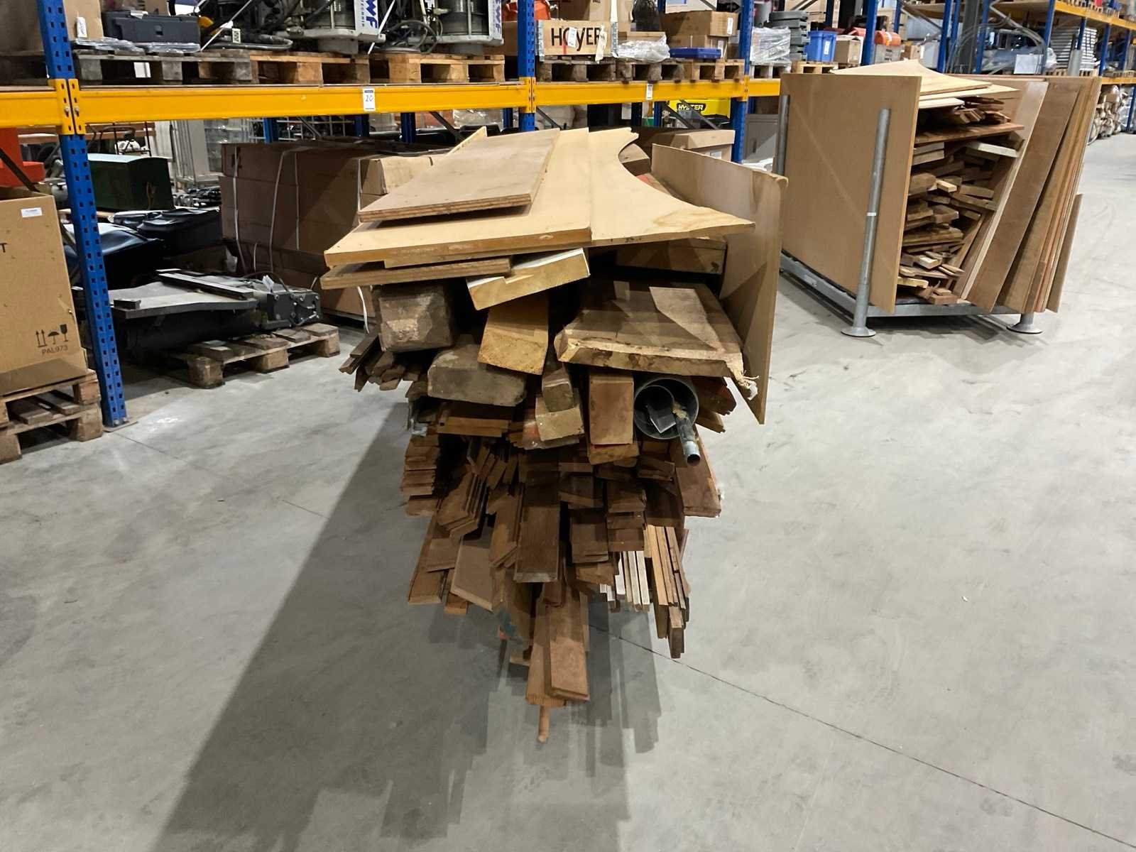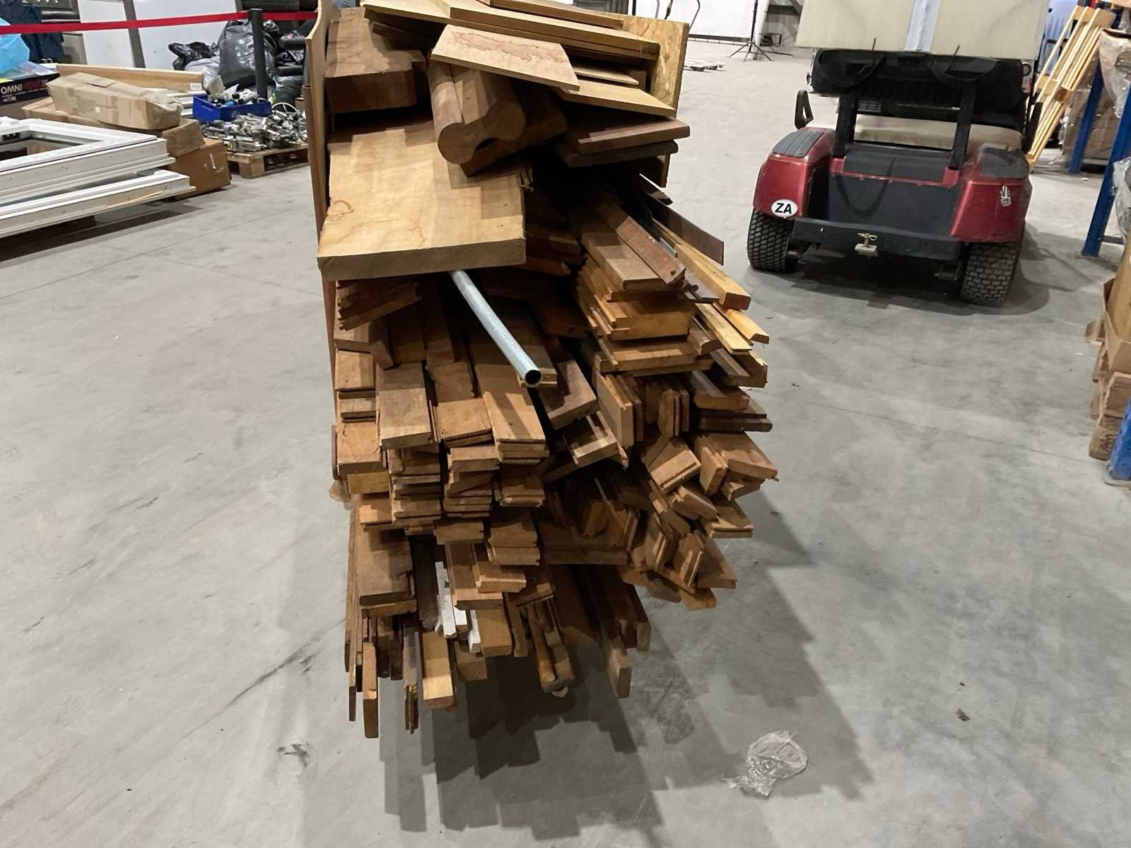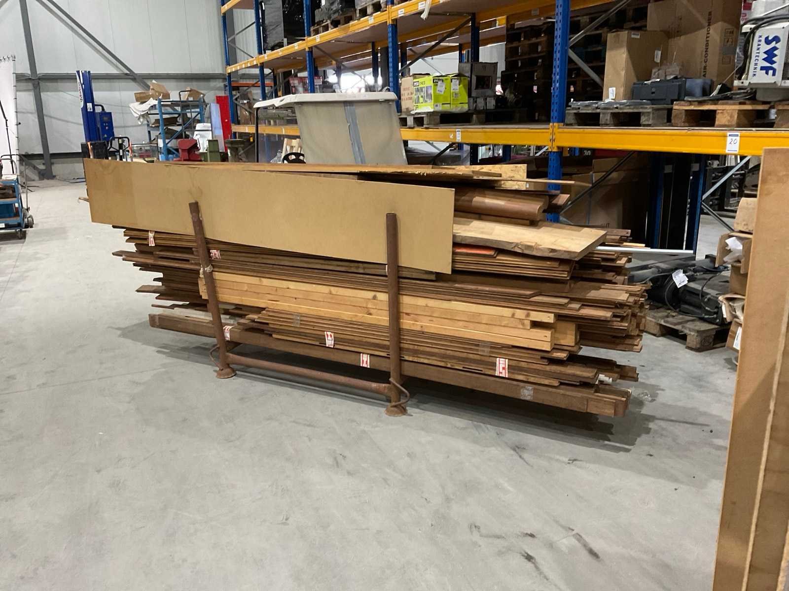 Diverse soorten droog hardhout, kavel bestaat uit verschillende afmetingen waaronder circa 270x7 cm ; met metalen rek