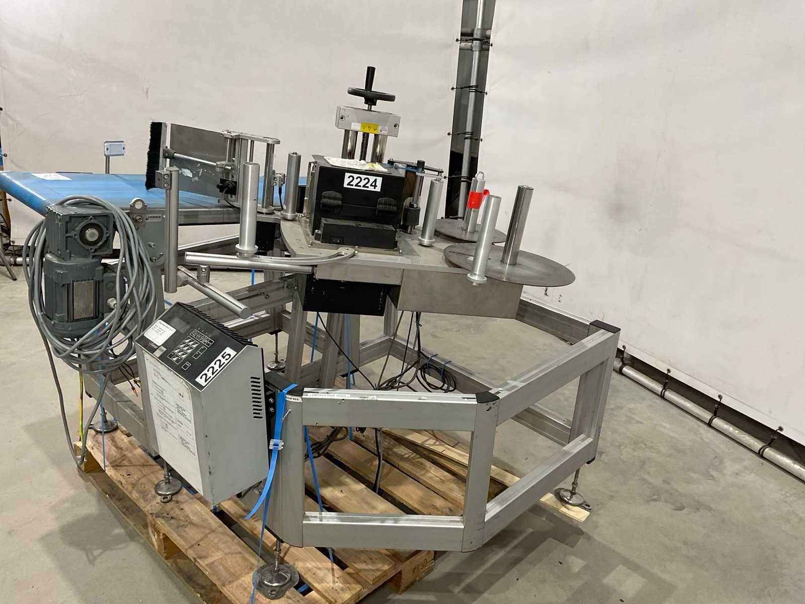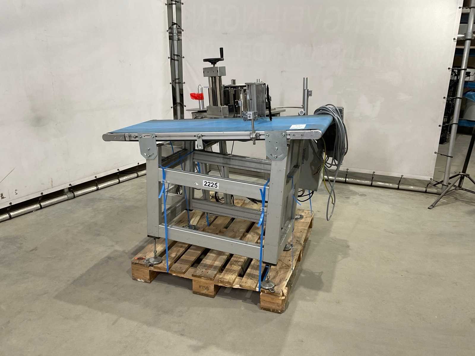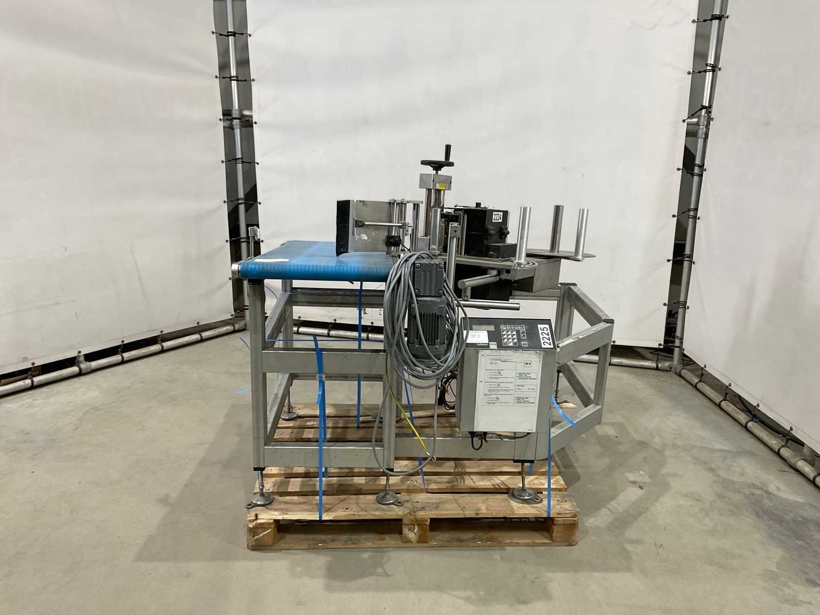 Met zebra ze 500 etiketten machine; transportband circa 125 cm lang; 48 cm band breedte Merk: Collamat Type: 8600 Totale afmeting L: 1300mm Totale afmeting Breedte: 1500mm Totale afmeting Hoogte: 1300mm