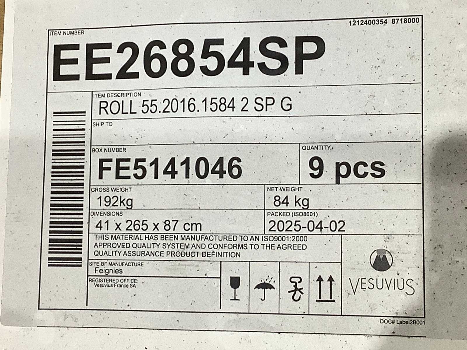 Dit kavel bevat 9 rollen, een fused silica roller (gesmolten silica-rol) is een hoogwaardige keramische rol gemaakt van vrijwel zuiver siliciumdioxide die wordt gebruikt in industriële ovens, met name in glasverwerkingsprocessen. Deze rollen staan bekend om hun vermogen om extreme temperaturen en thermische schokken te weerstaan zonder te vervormen; Toepassingen: Ze worden voornamelijk gebruikt als transportrollen in glasfabrieken (glasoven-tempering) en bij de productie van zonne-energiecellen (solar thin film processing)afmeting 41x265x87 cm Merk: Vesuvius Type: EE 26854 Bouwjaar: 2025