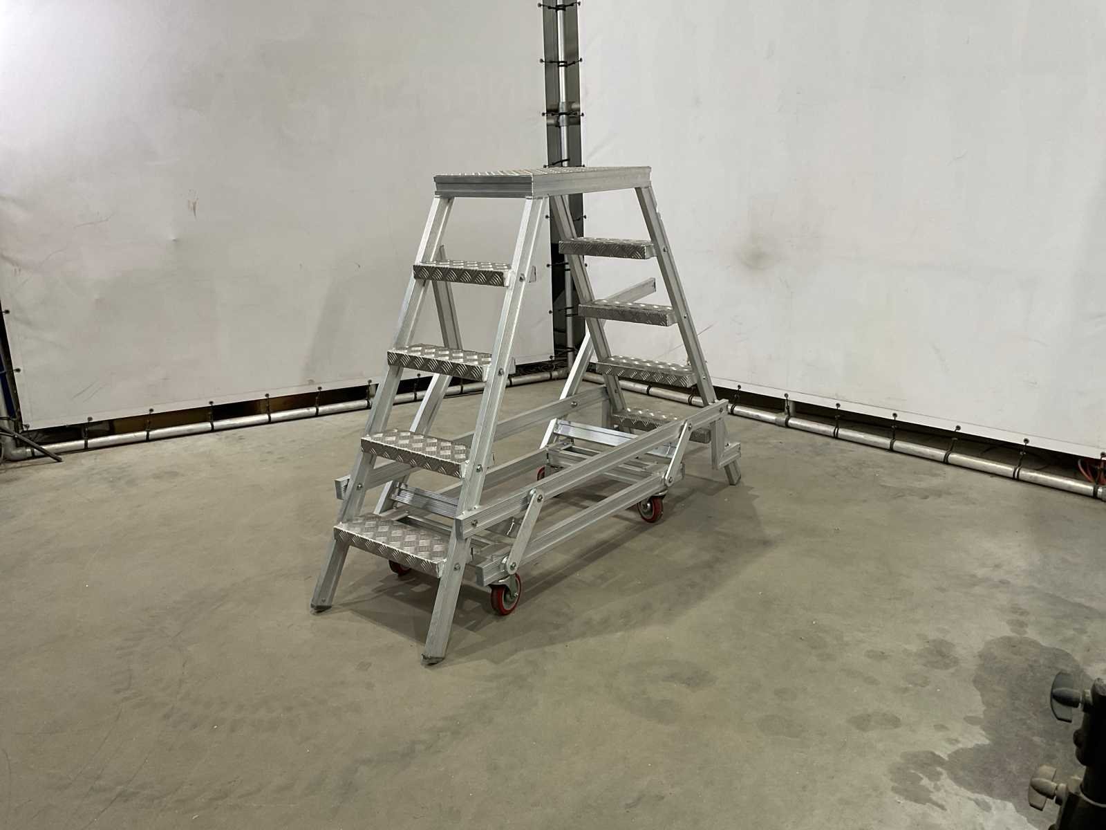 Vincotte mobiele trap; met mogelijkheid om de trap vast te zetten Merk: Smits Aluminium: true Oplooptrap: true Dubbel: true Totale afmeting L: 1600mm Totale afmeting Breedte: 550mm Totale afmeting Hoogte: 1270mm