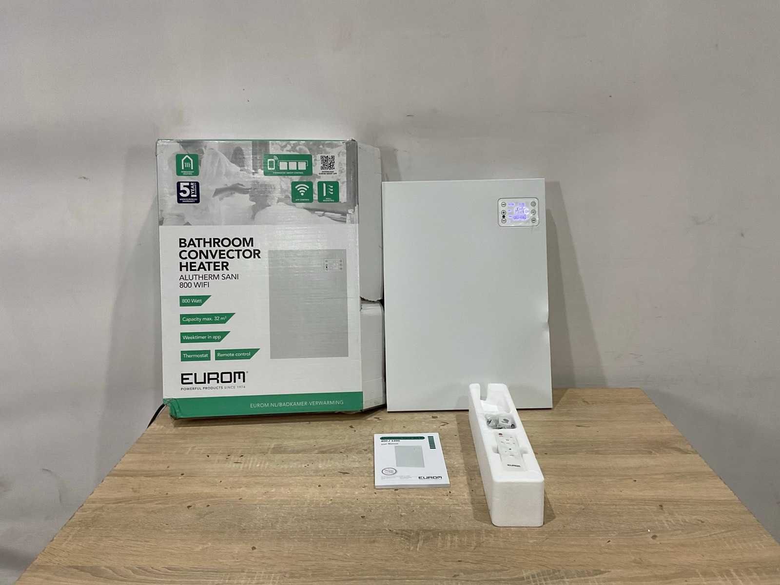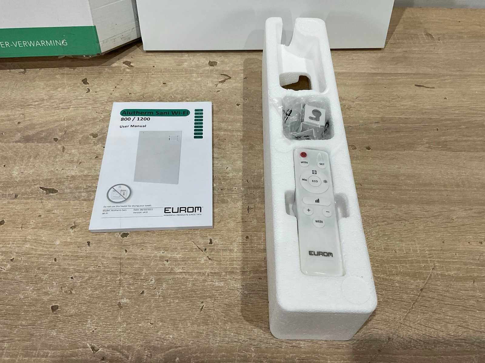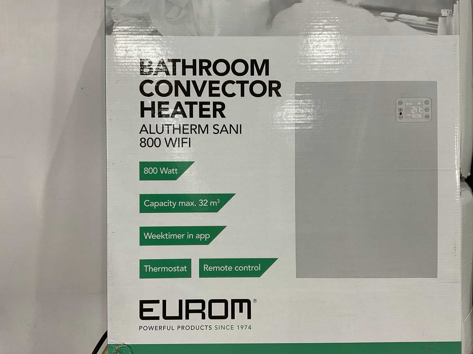 Merk: Eurom Type: Alutherm Sani 800 wifi Aansluiting: 220V Totale afmeting Breedte: 400mm Totale afmeting Hoogte: 560mm