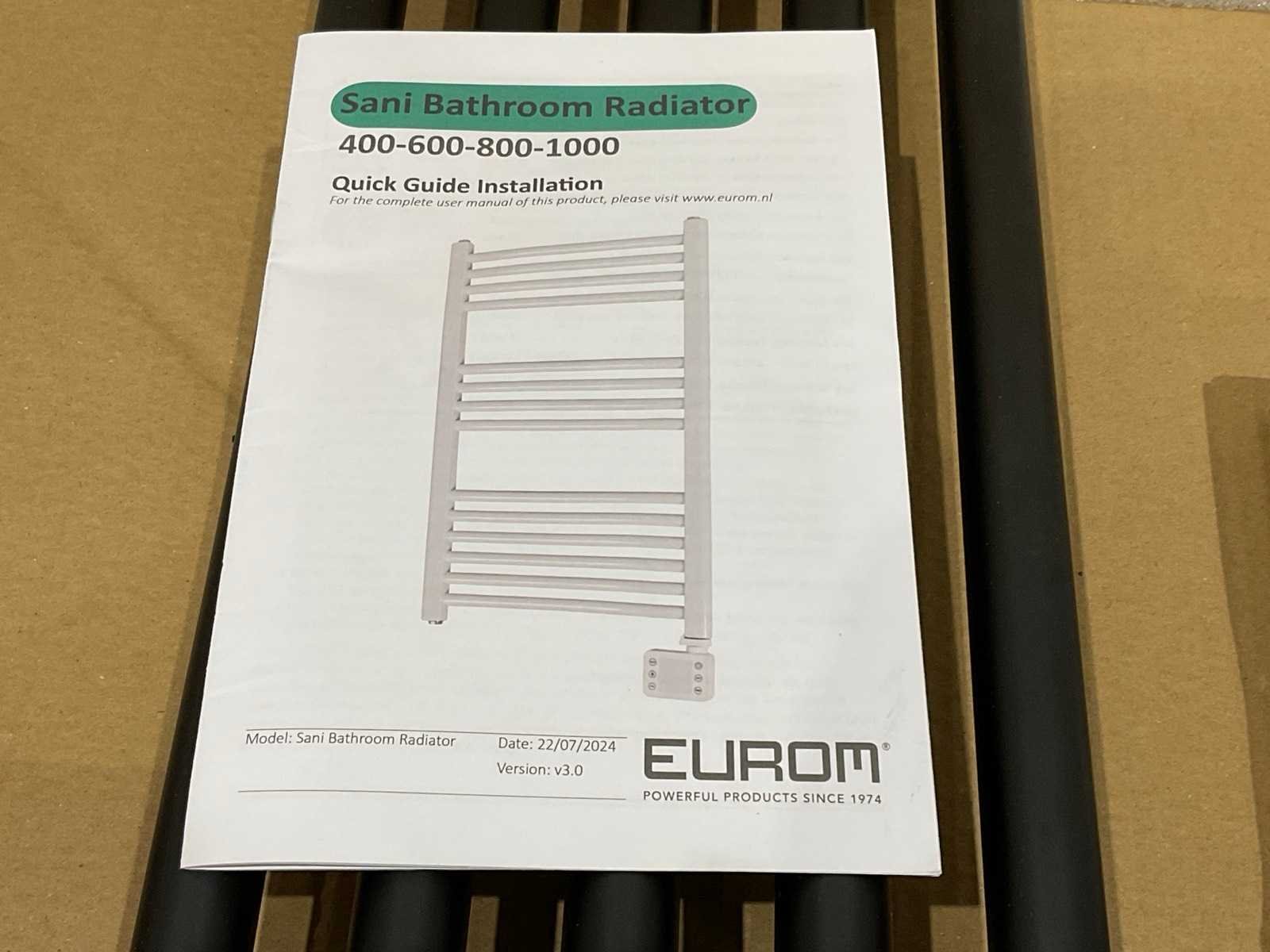 Merk: Eurom Model: Sani bathroom radiator 800 wifi black Breedte: 50cm Hoogte: 110cm