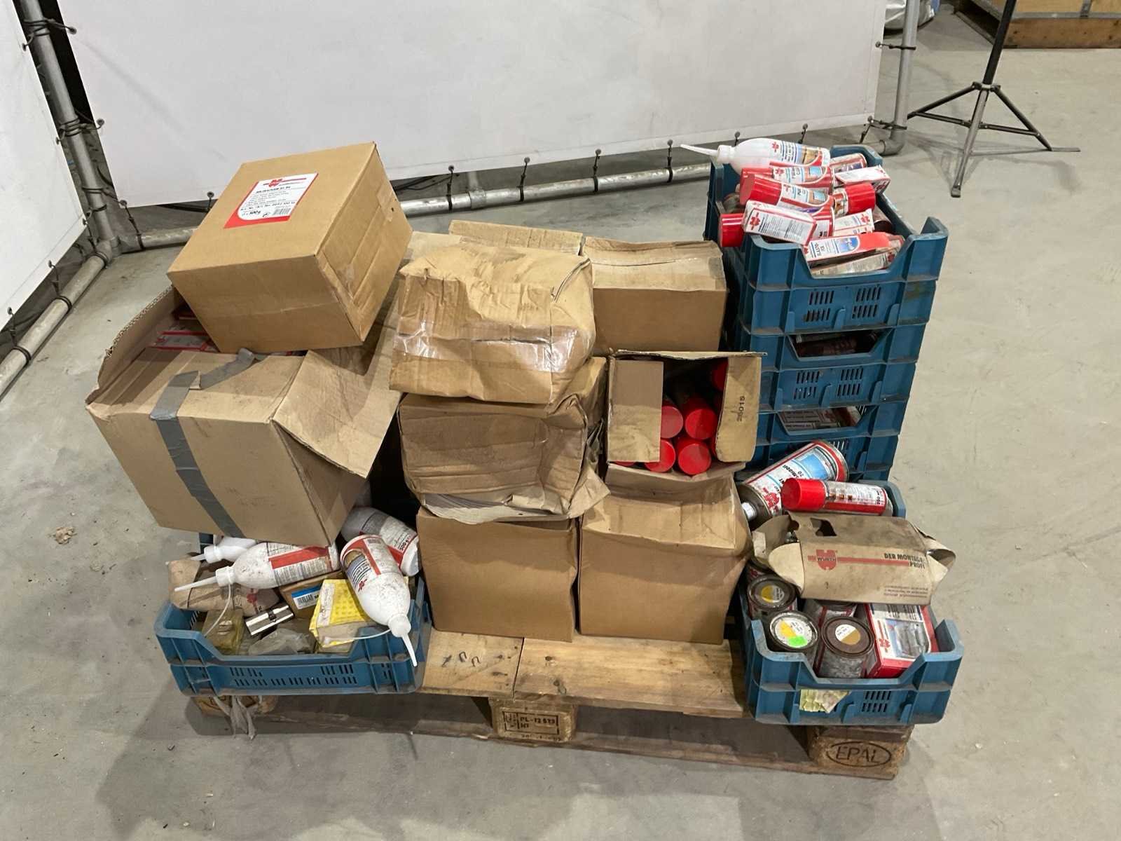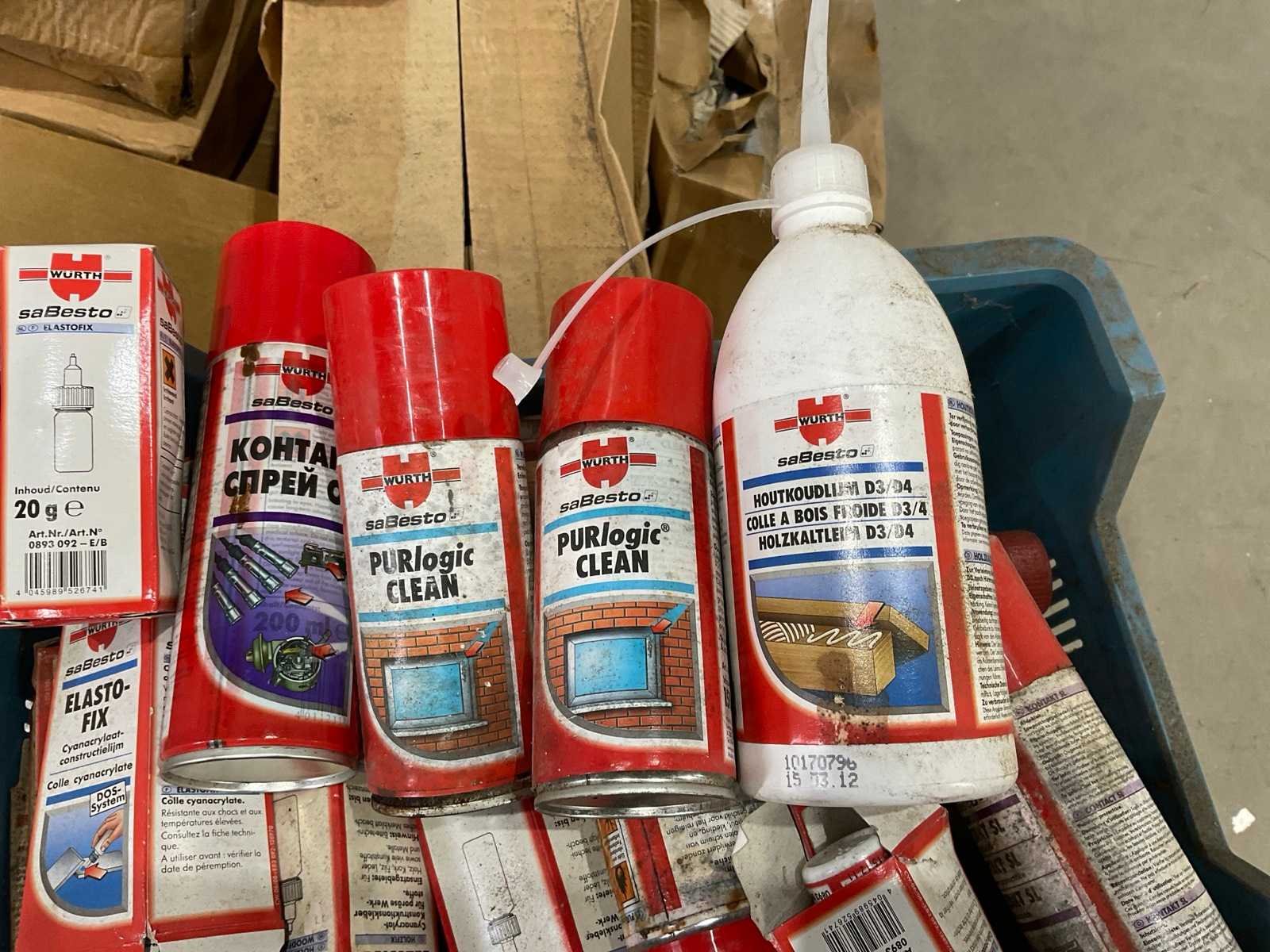 Kavel bestaat uit diverse lijmen; contact spray; reinigingsmiddel; de artikelen zijn over datum Merk: Wurth