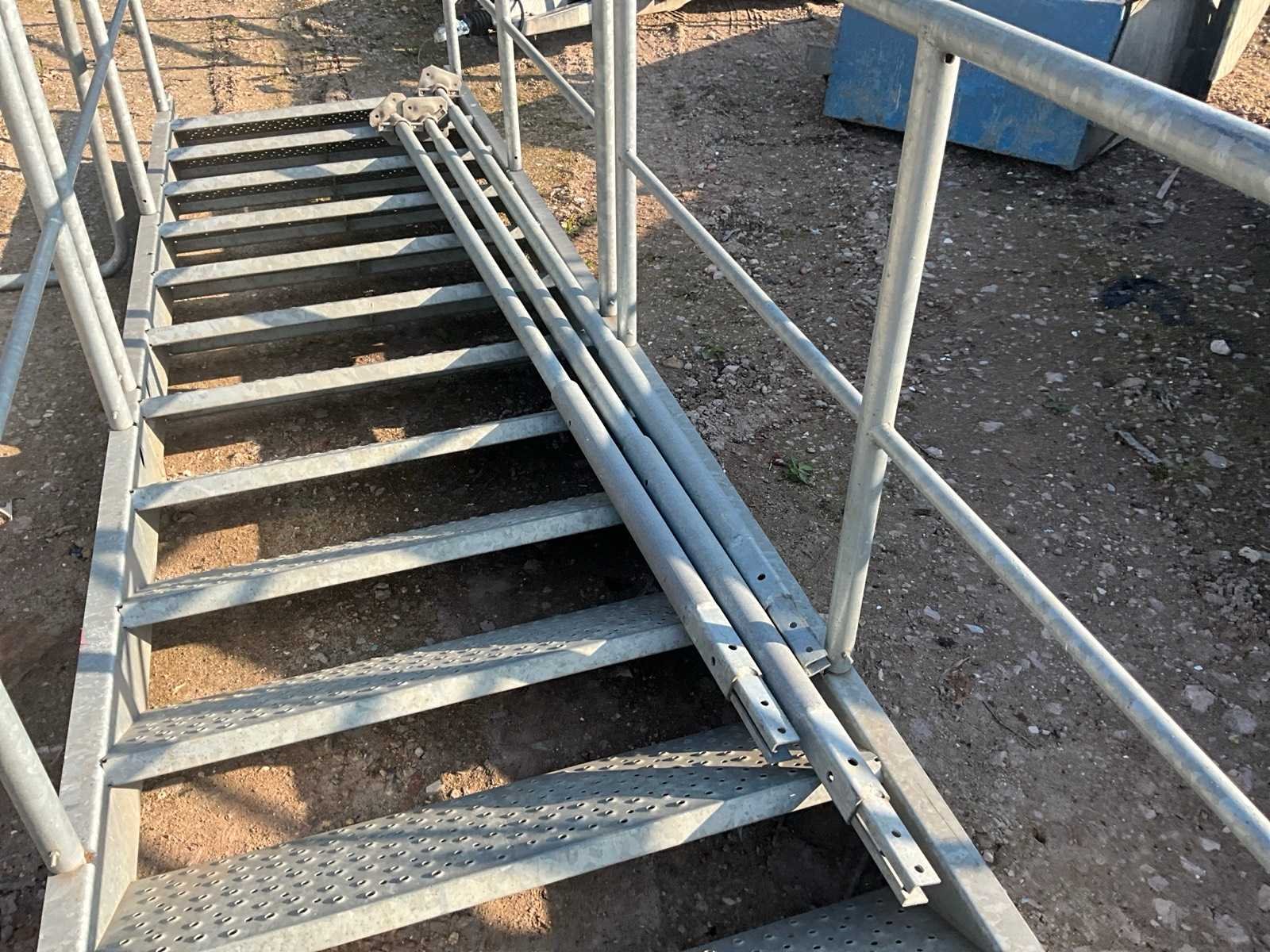 Trap hoogte circa 3750 mm, transport afmeting circa: trap 5200x1120x1150 mm, bordes 3550x1900x1100 mm Gegalvaniseerd: true