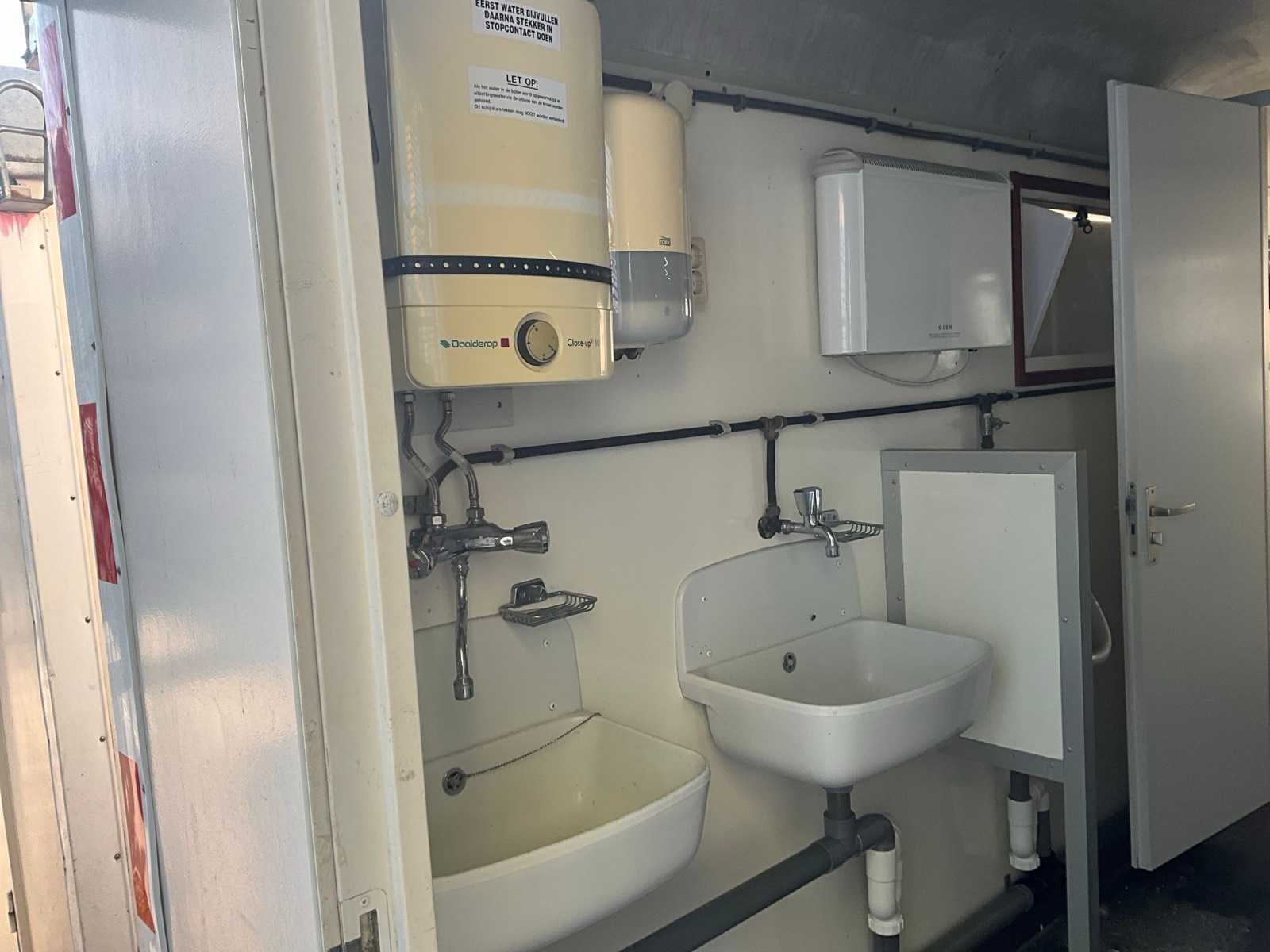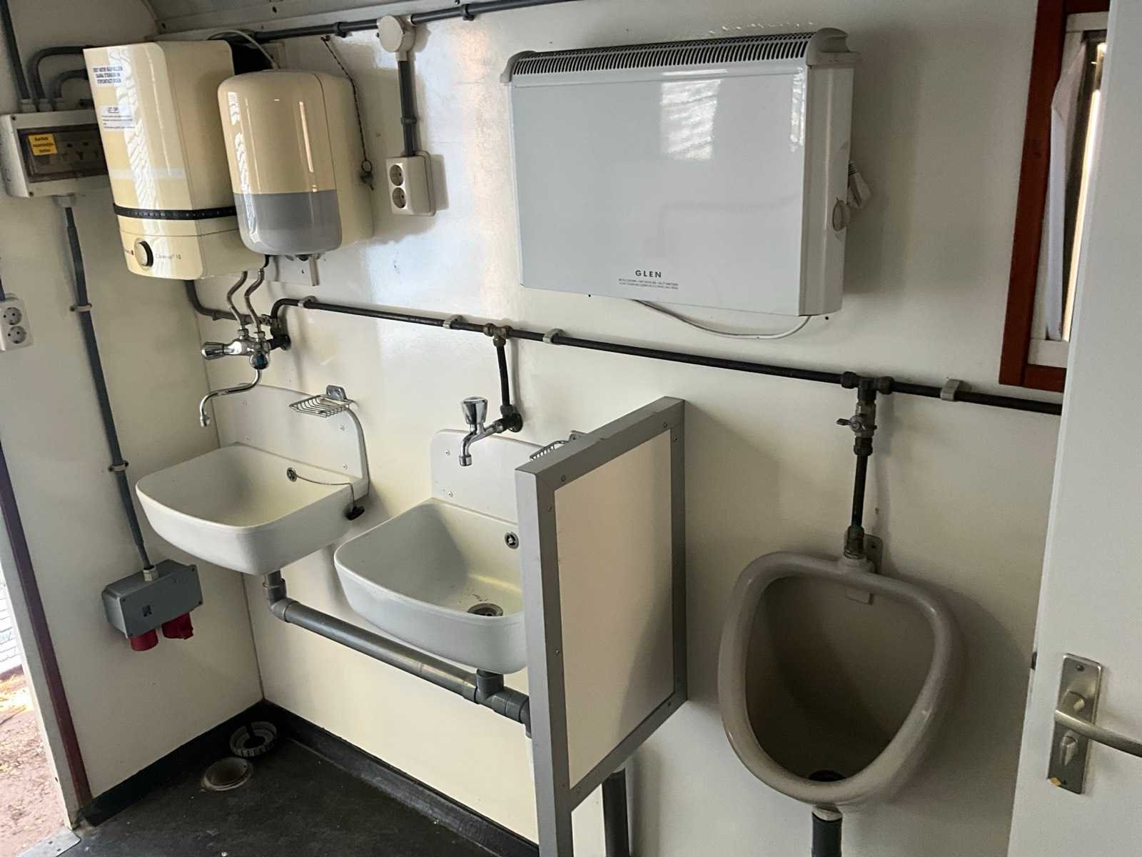 Voorzien van: 4x urinoir, boiler, groepenkast, radiator, dlepelopname, hijsframe. Merk: Brouwer Aantal ramen: 4 Aantal toiletten: 2 Aantal wastafels: 4 Totale afmeting L: 4400mm Totale afmeting Breedte: 2400mm Totale afmeting Hoogte: 2400mm