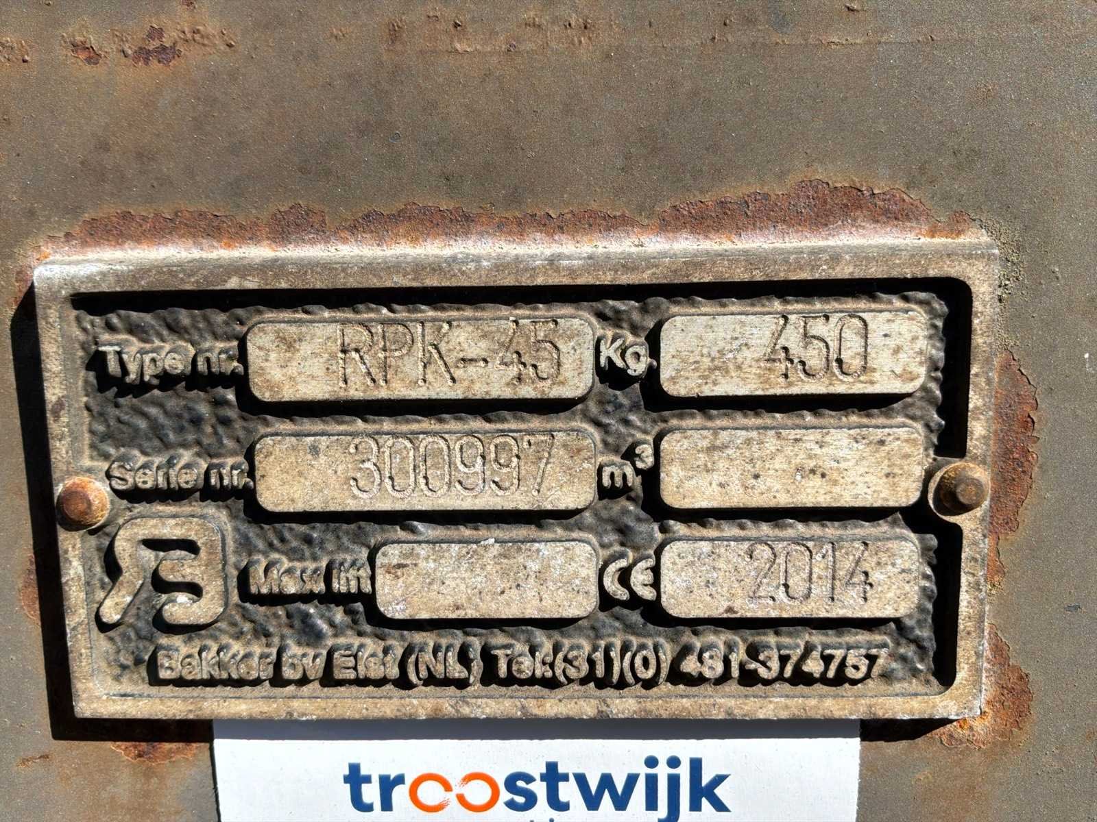 Merk: Bakker Type: RPK-45 Bouwjaar: 2014 Serienummer: 300997 Totale afmeting L: 1070mm Totale afmeting Breedte: 2500mm Totale afmeting Hoogte: 1800mm