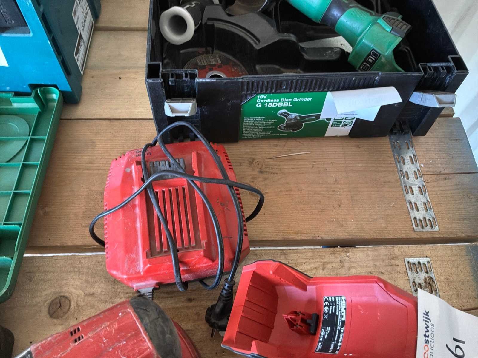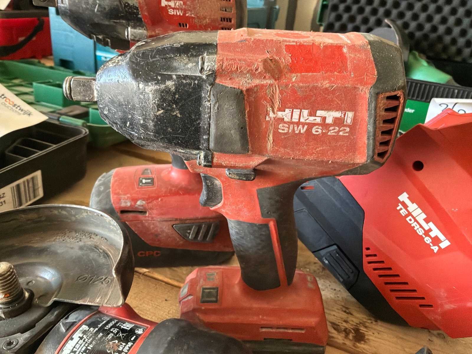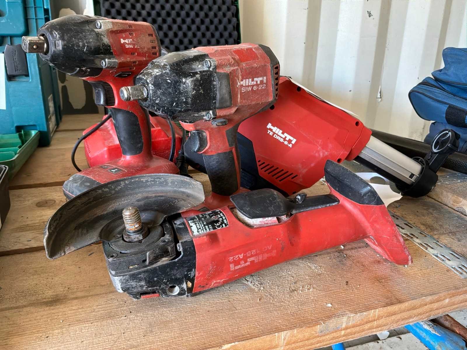 Bestaande uit: 1x Hilti haakse slijper, 2x Hilti slagmoersleutel, 1x stofzuiger, 1x lader en accu. Delig: 4