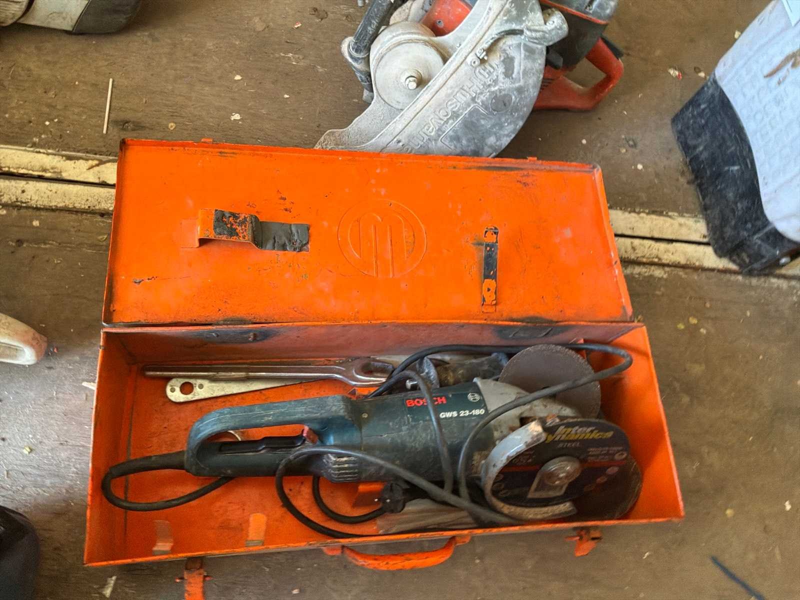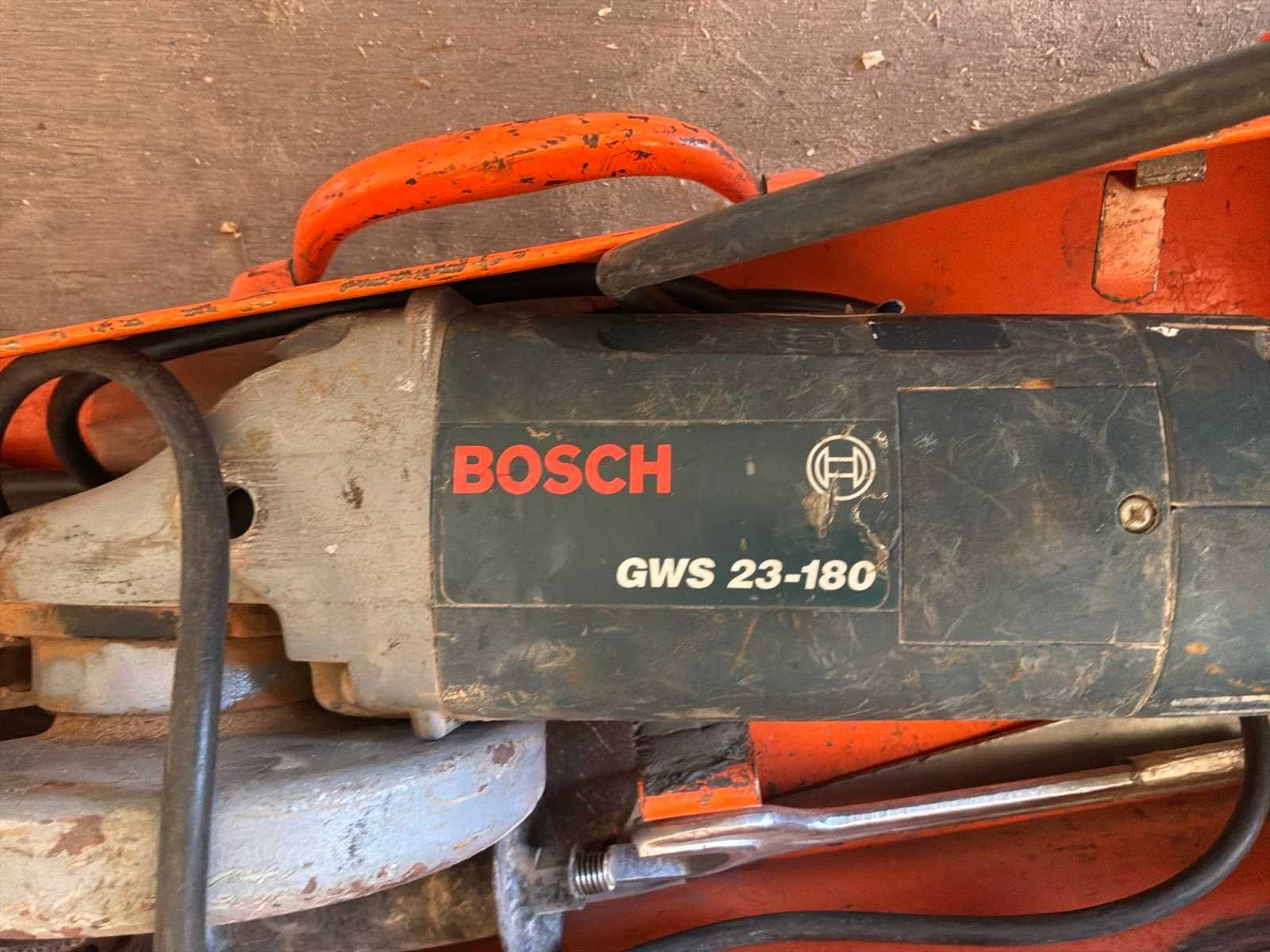 Merk: Bosch Serienummer: GWS 23-180 Bouwjaar: 200 Schijfdiameter: 180mm Vermogen: 2300W Met koffer: true Aansluiting: 230V