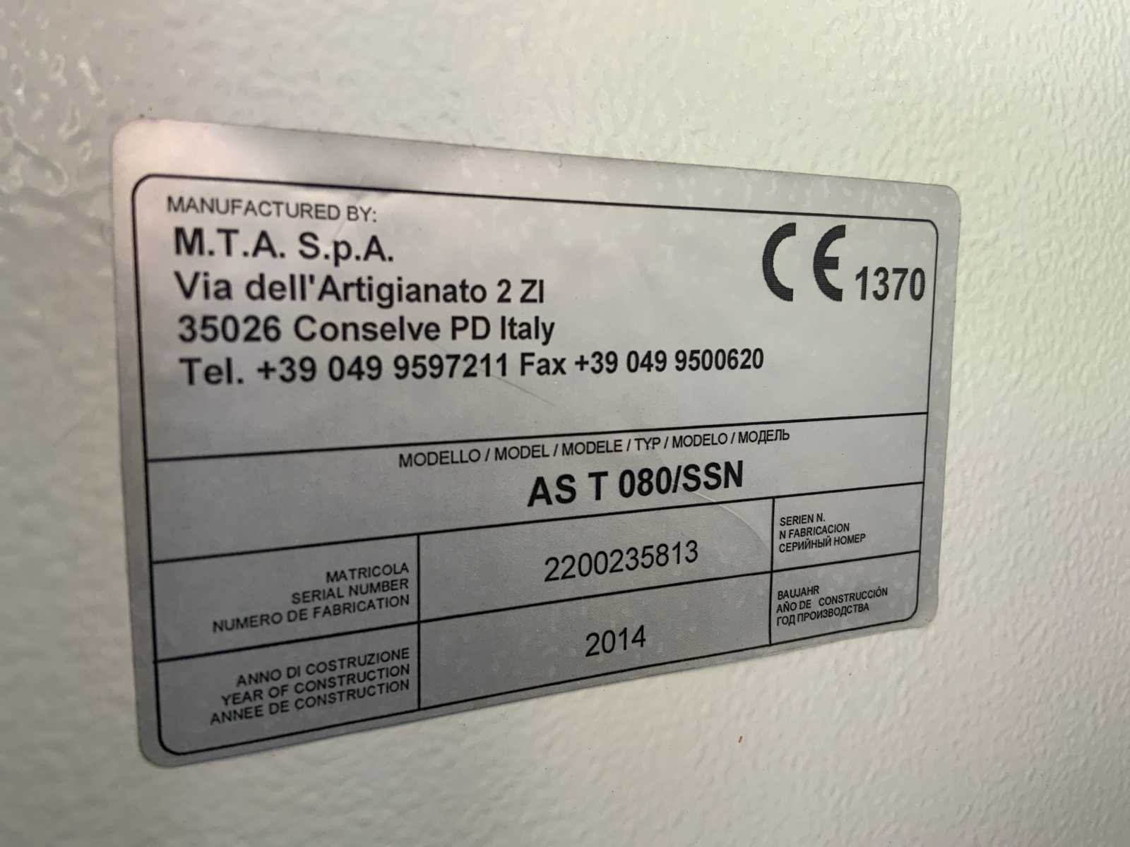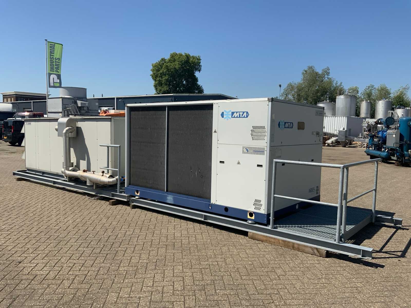 MTA chiller met luchtbehandelings unit. Koelvermogen: 182kW. Type koudemiddel: R410a. Capaciteit luchtbehandelingskast: Merk: MTA Type: AS T 080/SSN Bouwjaar: 2014 Aansluiting: 400V Totale afmeting L: 11100mm Totale afmeting Breedte: 2300mm Totale afmeting Hoogte: 2100mm