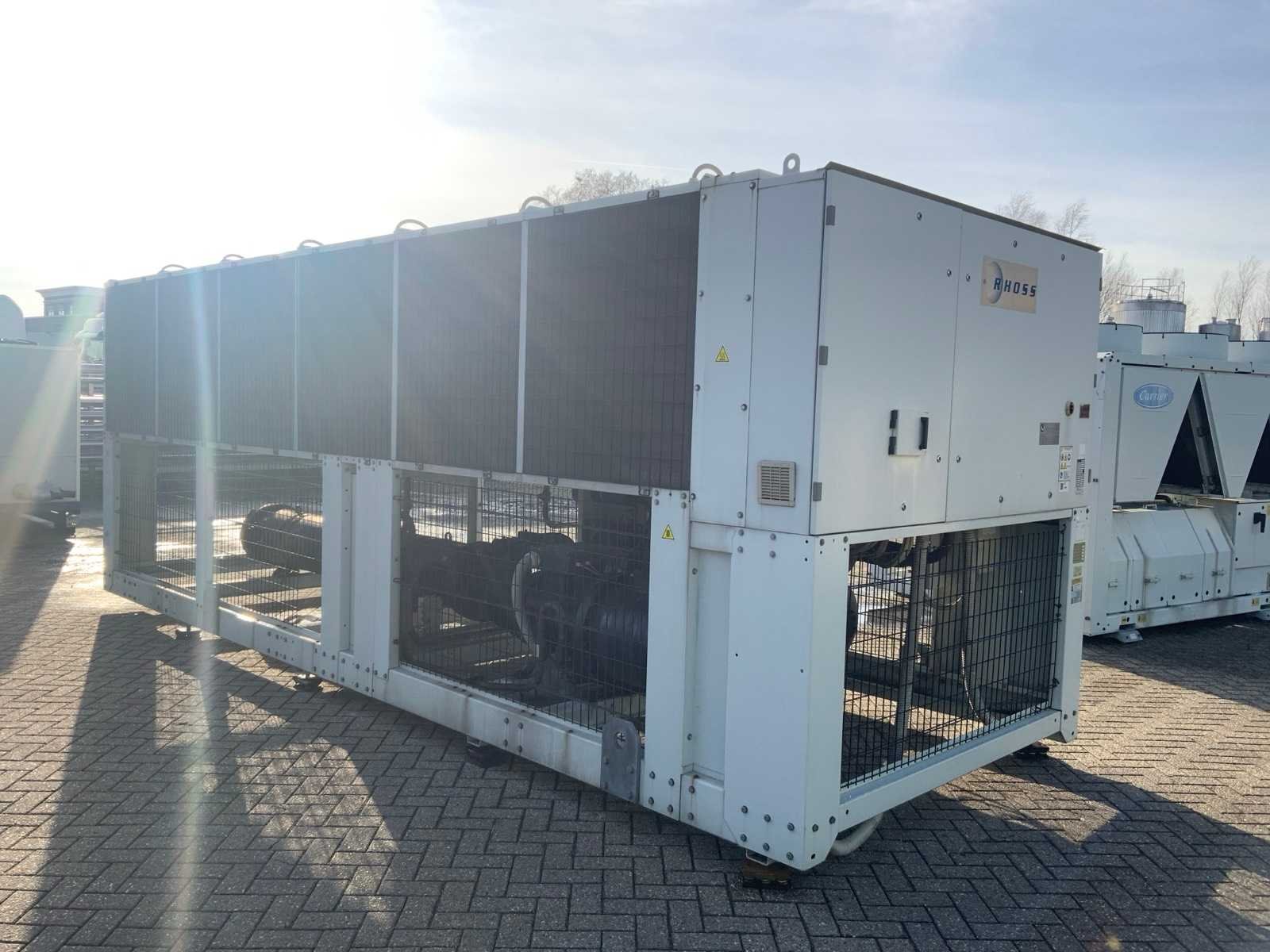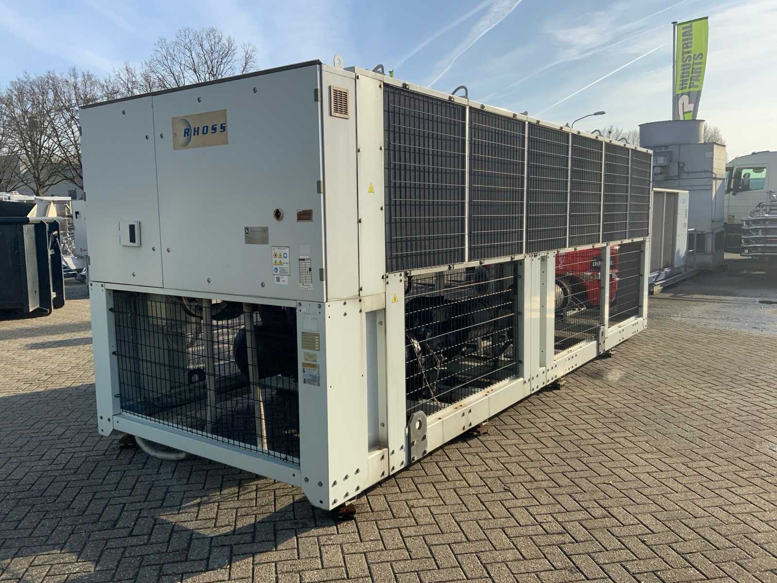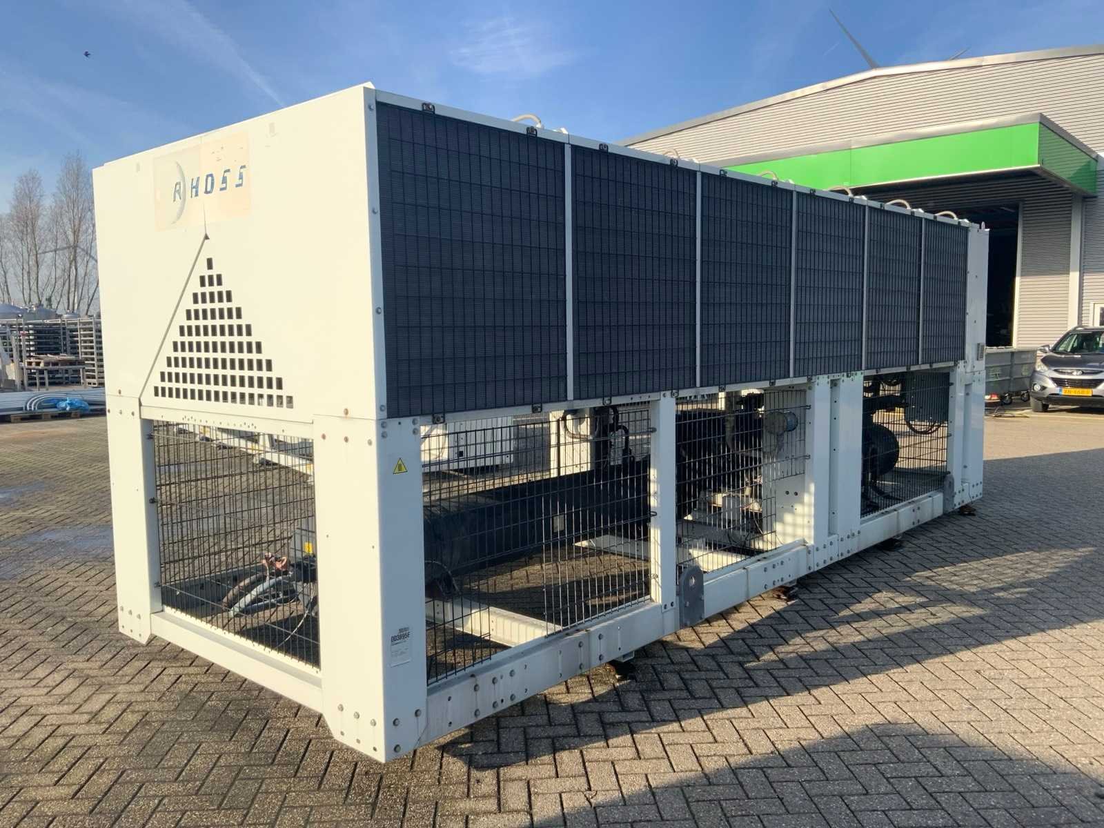 Koelvermogen: 711kW. Type koudemiddel: R134A. Merk: Rhoss Type: TCAVBZ 2701 Bouwjaar: 2011 Aansluiting: 400V Totale afmeting L: 6610mm Totale afmeting Breedte: 2230mm Totale afmeting Hoogte: 2520mm