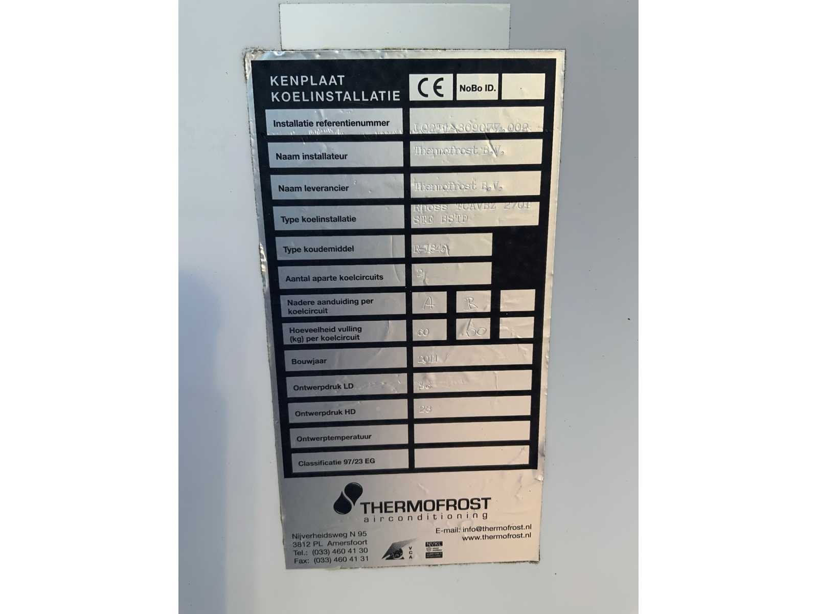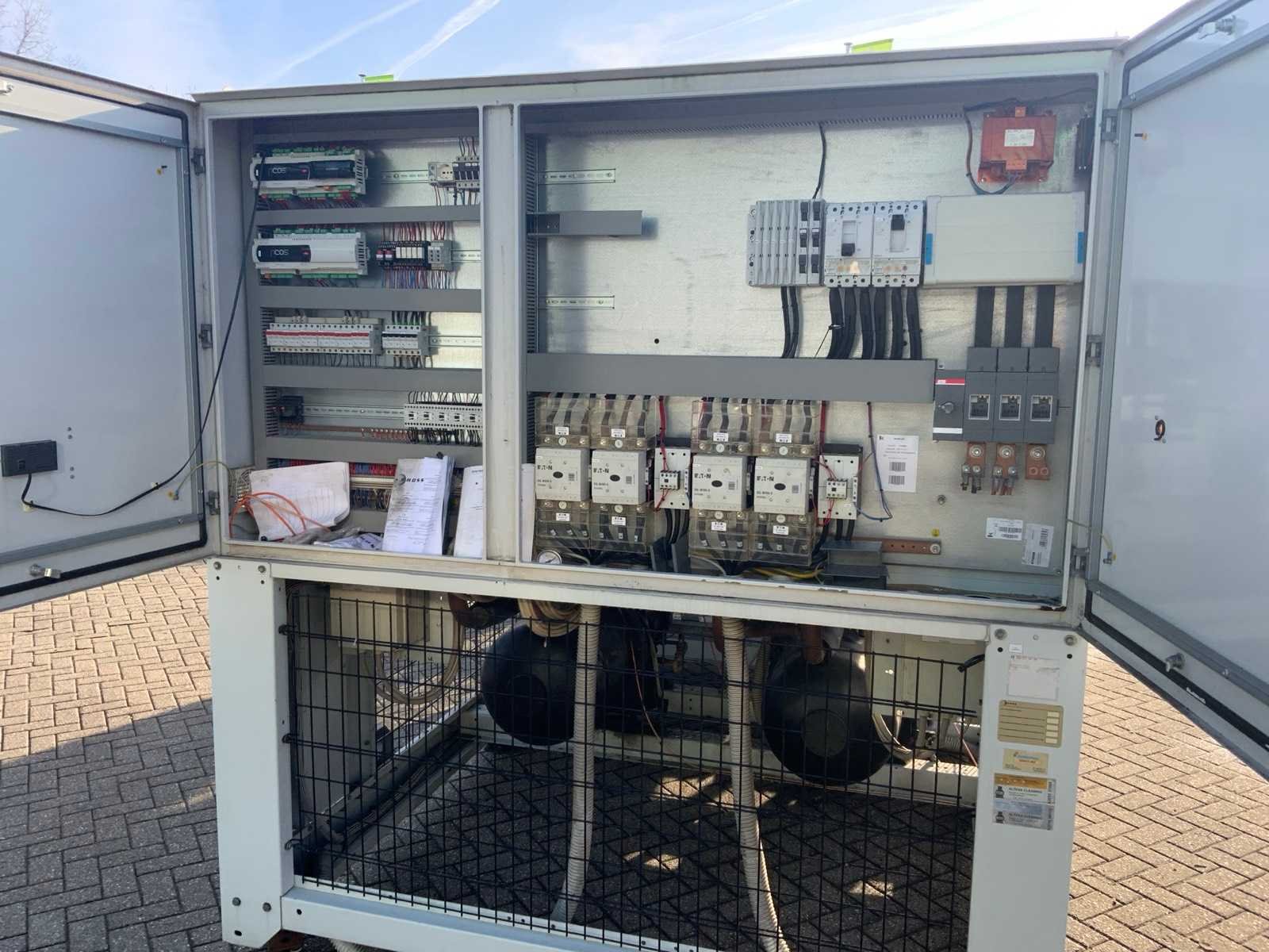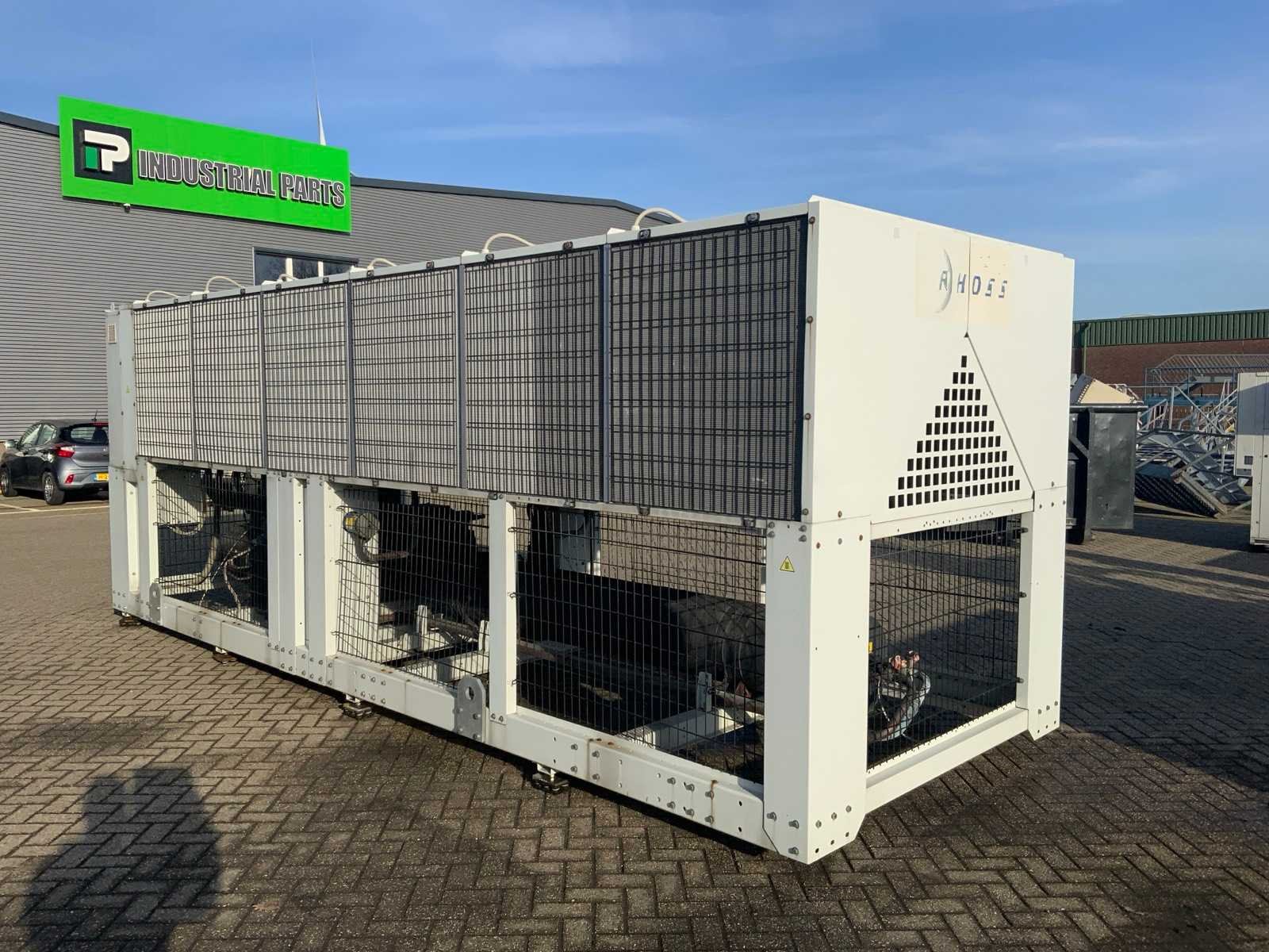 Koelvermogen: 711kW. Type koudemiddel: R134A. Merk: Rhoss Type: TCAVBZ 2701 Bouwjaar: 2011 Aansluiting: 400V Totale afmeting L: 6610mm Totale afmeting Breedte: 2230mm Totale afmeting Hoogte: 2520mm