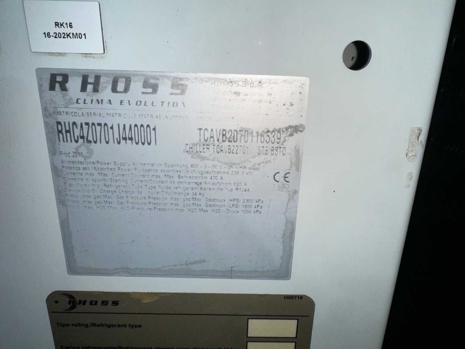2011 rhoss tcavbz 2701 chiller