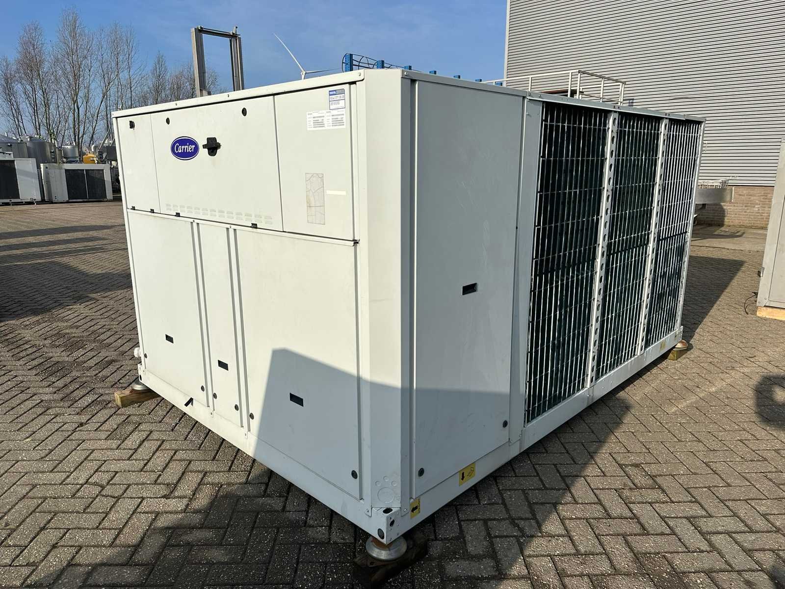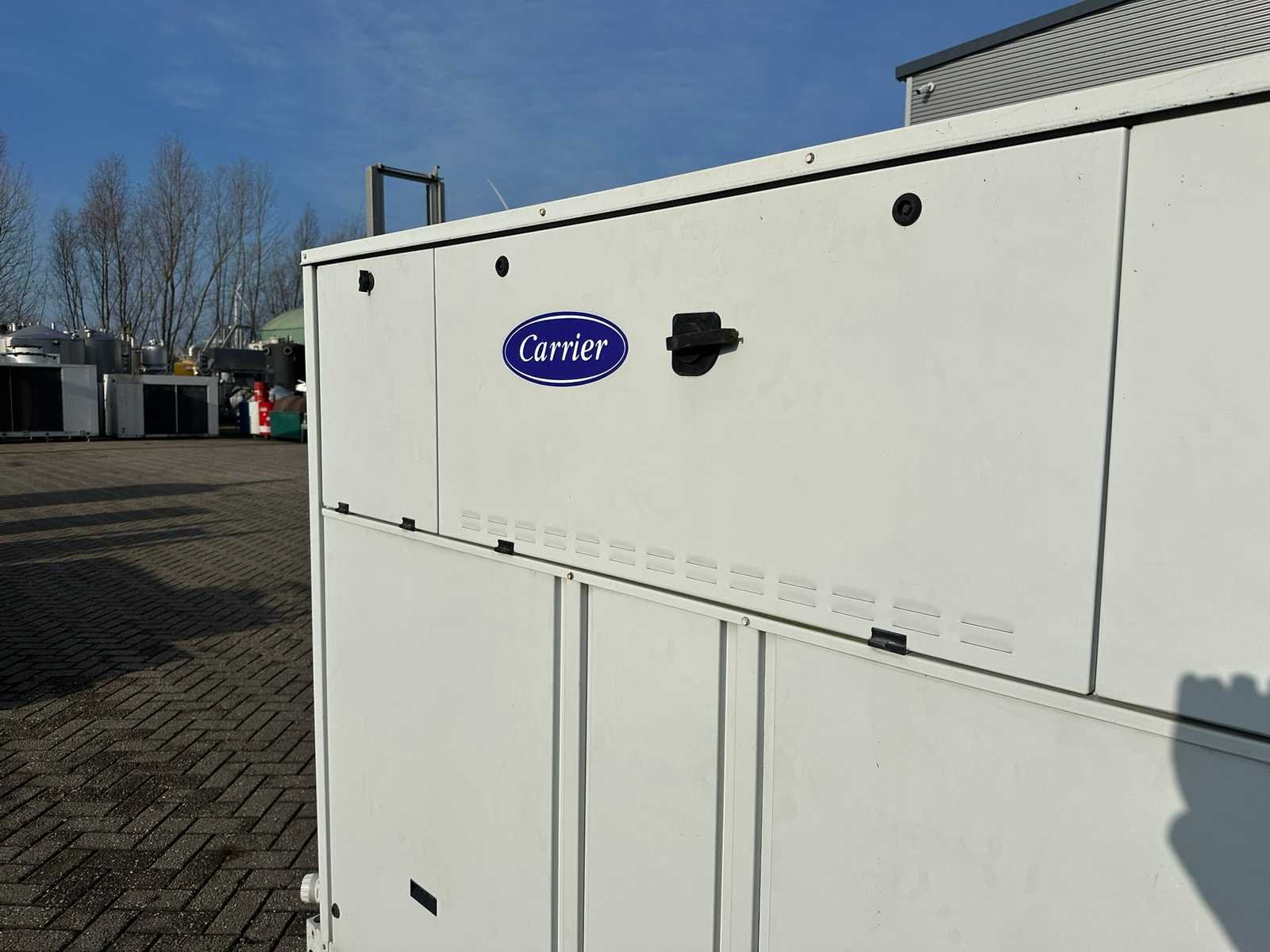 Koelvermogen: 245kW. Type koudemiddel: R407c. Merk: Carrier Type: 30RA-240-B1272-PEE Bouwjaar: 2008 Aansluiting: 400V Eigen gewicht: 2305kg Totale afmeting L: 3500mm Totale afmeting Breedte: 2400mm Totale afmeting Hoogte: 1800mm