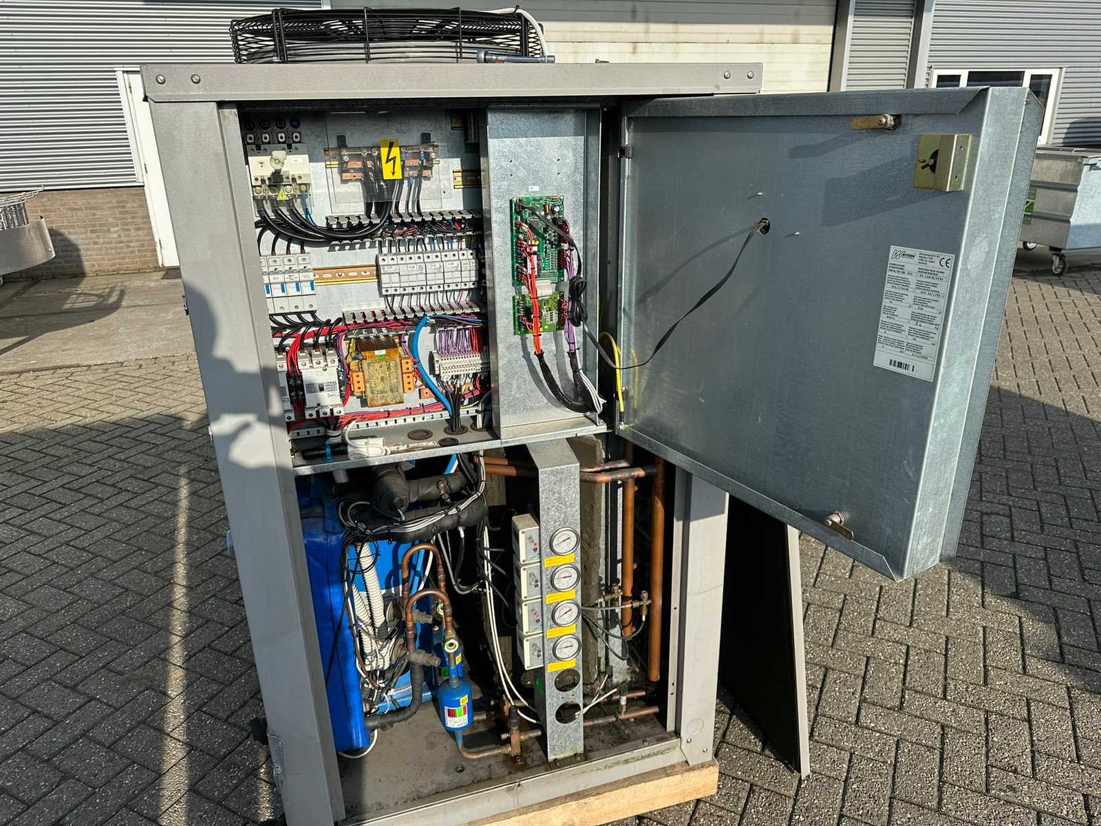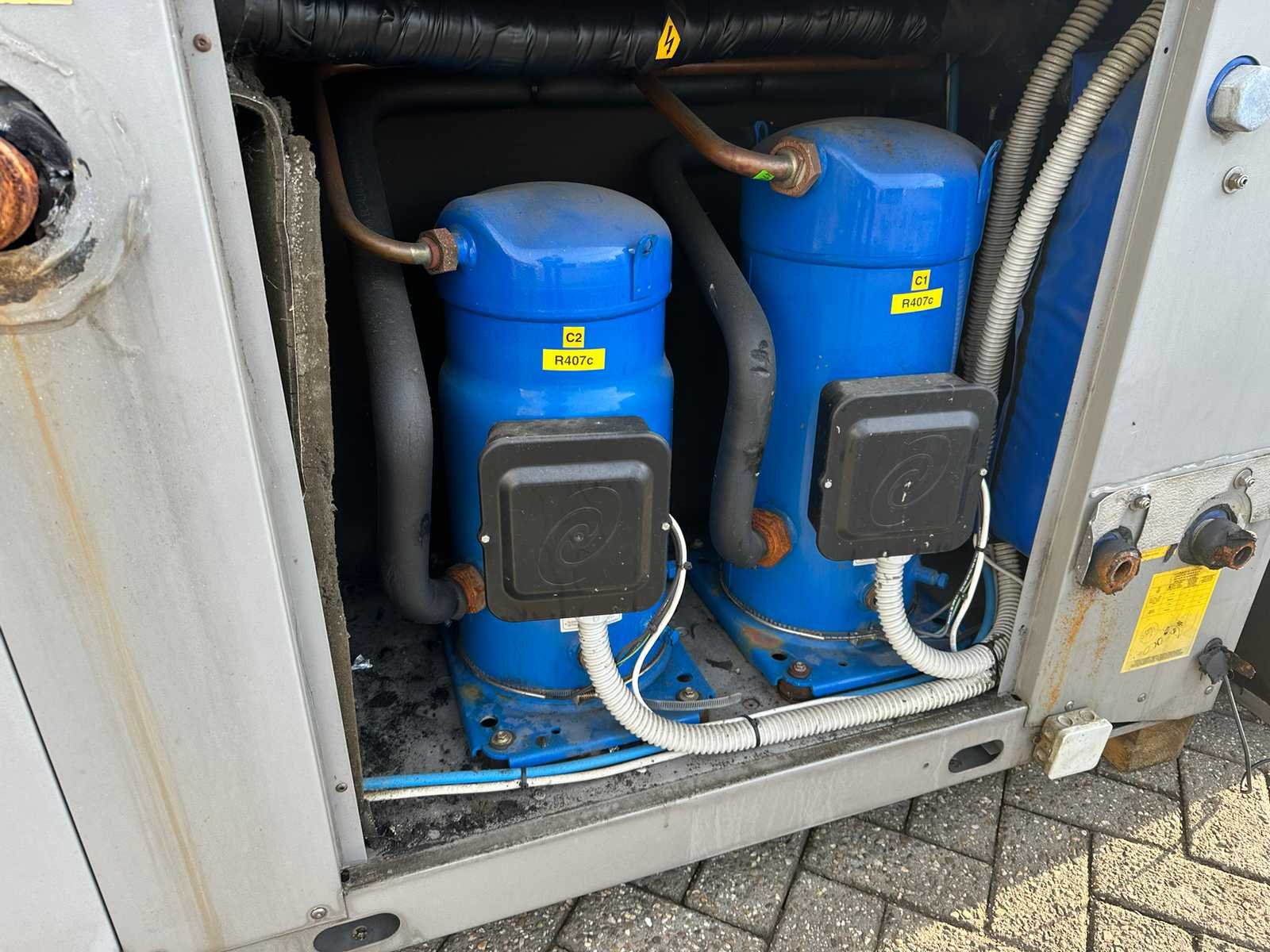 Koelvermogen: 63kW. Type koudemiddel: R407c. Merk: Western Type: ZETA/ST/N2 262 Bouwjaar: 2000 Aansluiting: 400V Totale afmeting L: 2200mm Totale afmeting Breedte: 1100mm Totale afmeting Hoogte: 1850mm