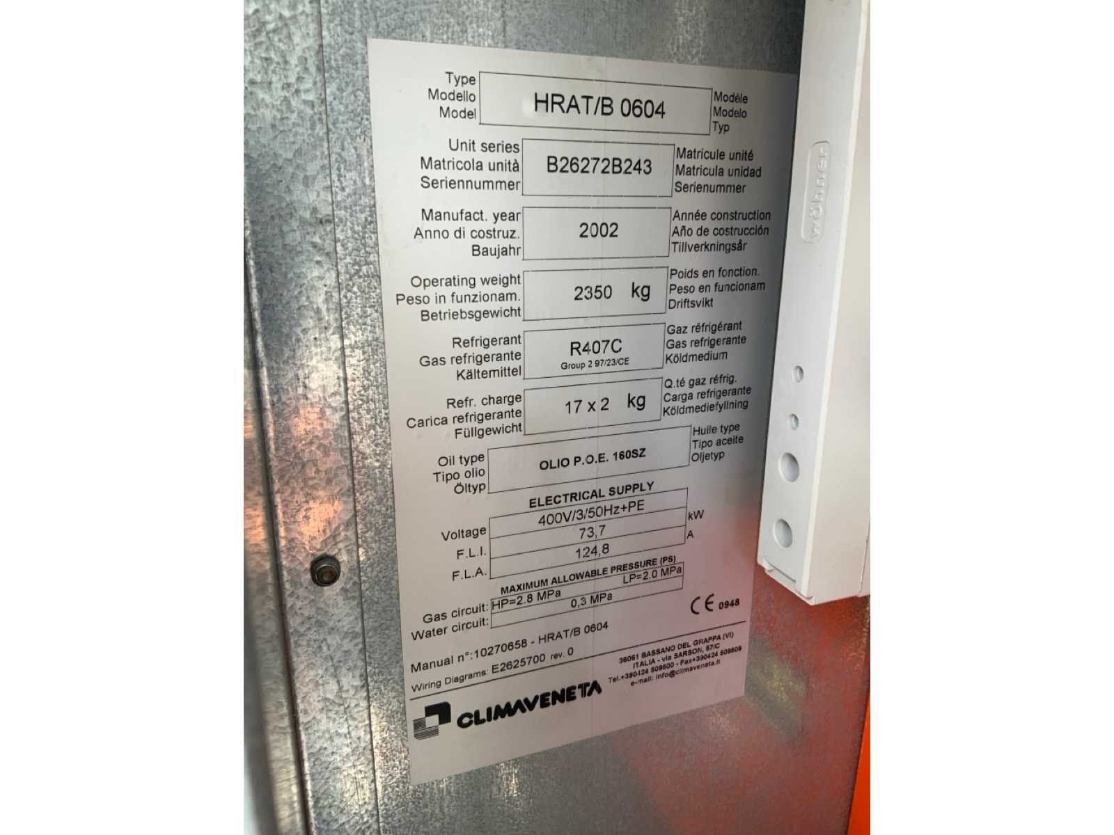 2002 climaveneta hrat/b 0604 chiller