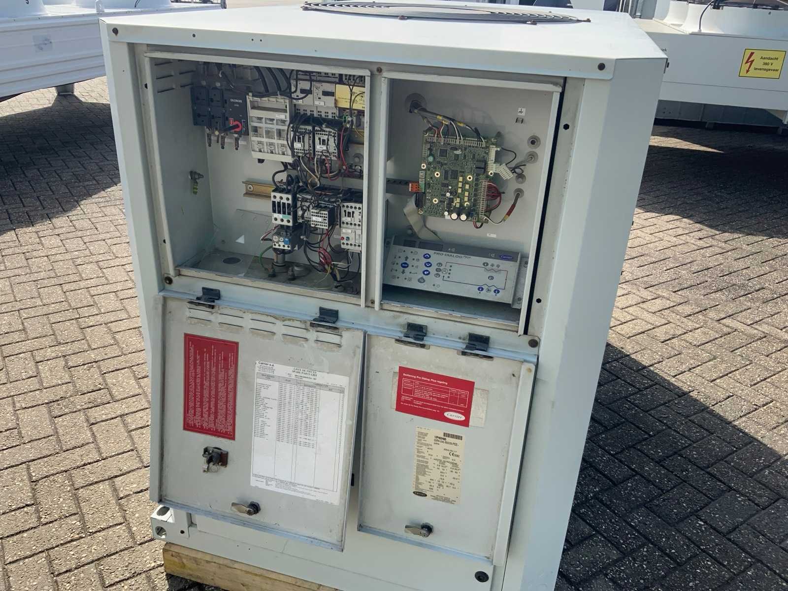 Koelvermogen: 40kW. Type koudemiddel: R407c. Merk: Carrier Type: 30RA-040-B0039-PEE Bouwjaar: 2004 Aansluiting: 400V Eigen gewicht: 526kg Totale afmeting L: 2060mm Totale afmeting Breedte: 1070mm Totale afmeting Hoogte: 1400mm
