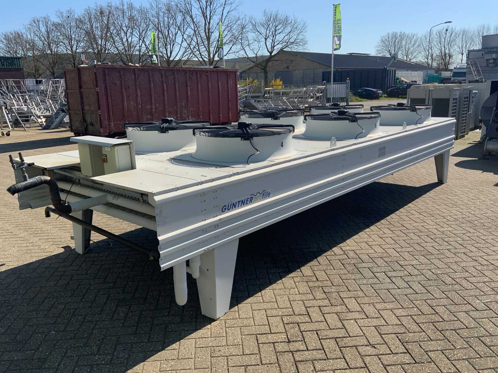 Werk temperaturen: 50 graden/ -30 graden. Maximale werkdruk: 23 bar. Max temperatuur: 100 graden. Ook onderdeel van combinatiekavel 41. Merk: Güntner Type: S-GHV 090.3A/2x3-L(S).E Bouwjaar: 2014 Aantal ventilatoren: 6 Totale afmeting L: 6500mm Totale afmeting Breedte: 2300mm Totale afmeting Hoogte: 1400mm