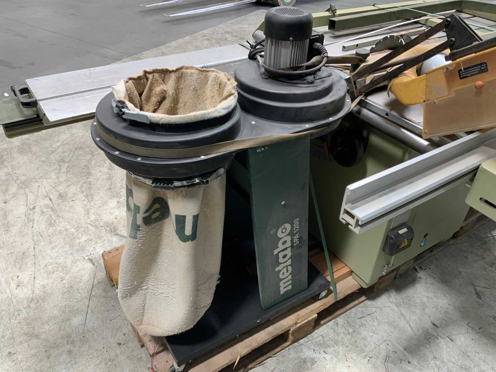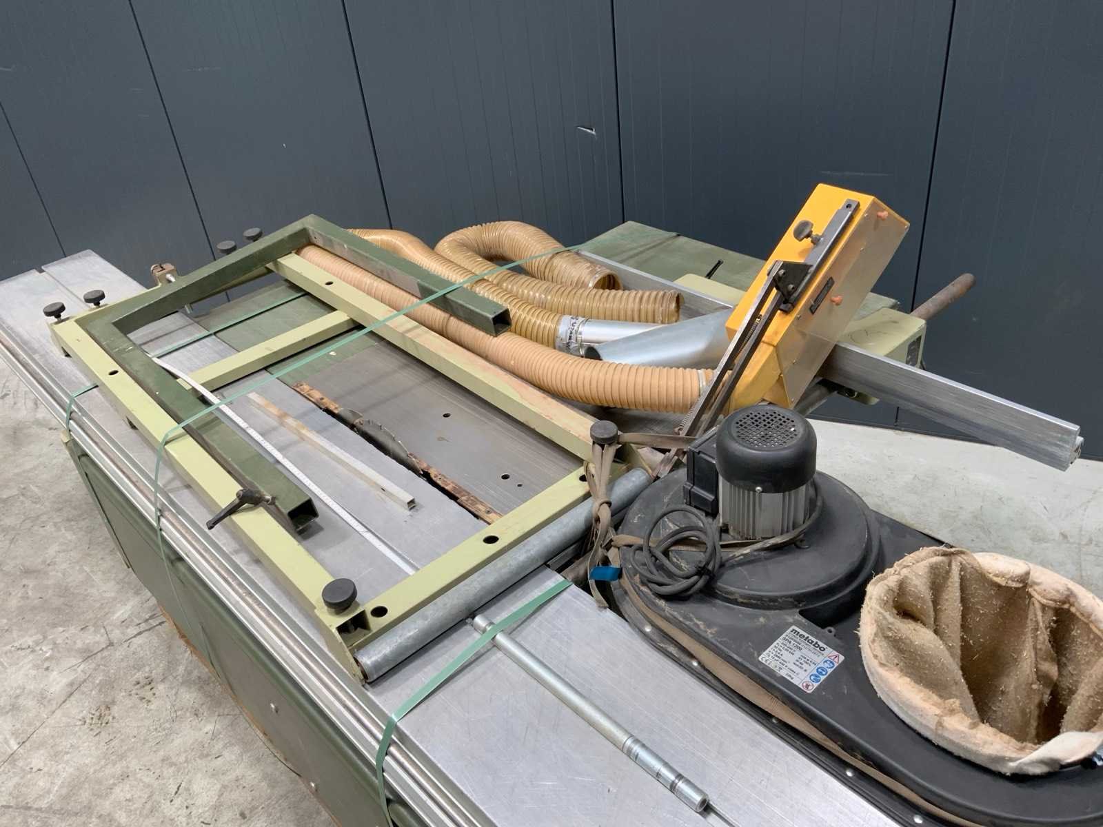 Met Metabo SPA 1200 afzuiging. Merk: SCM Type: SI320 Afmeting l: 3200mm Afmeting b: 1800mm Afmeting h: 1400mm