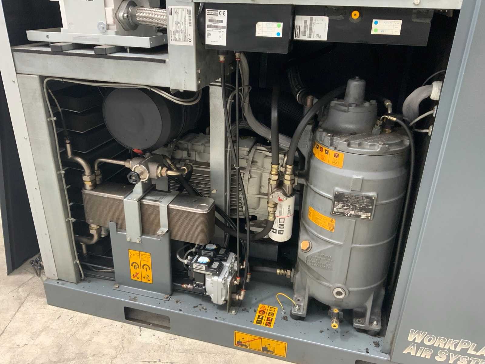 Merk: Atlas Copco Type: GA37VSD Bouwjaar: 2012 Serienummer: API480034 Capaciteit.: 12.8bar Vermogen: 37kW Luchtdroger: true Aansluiting: 400V Eigen gewicht: 1127kg Totale afmeting L: 1900mm Totale afmeting Breedte: 970mm Totale afmeting Hoogte: 1800mm