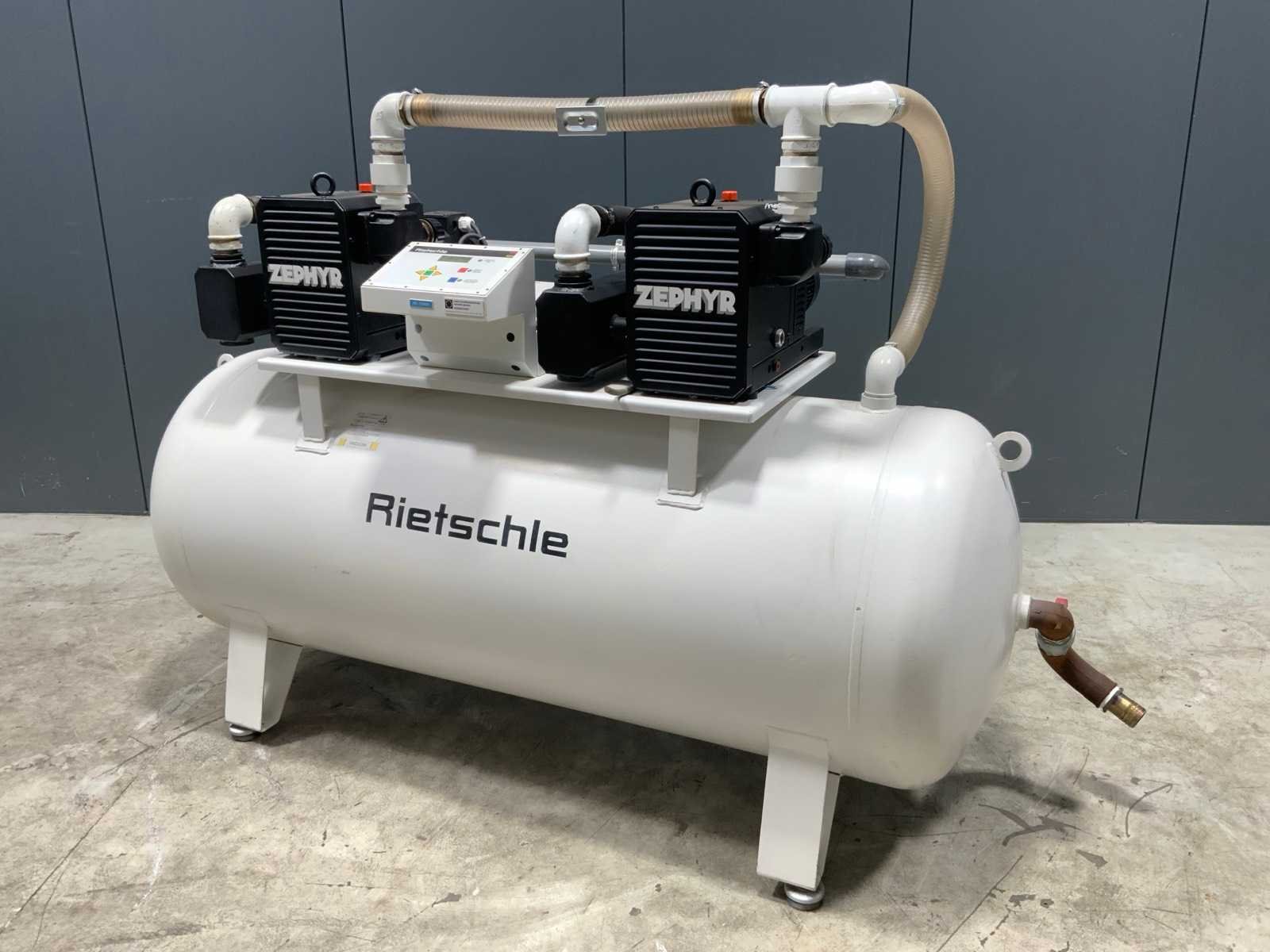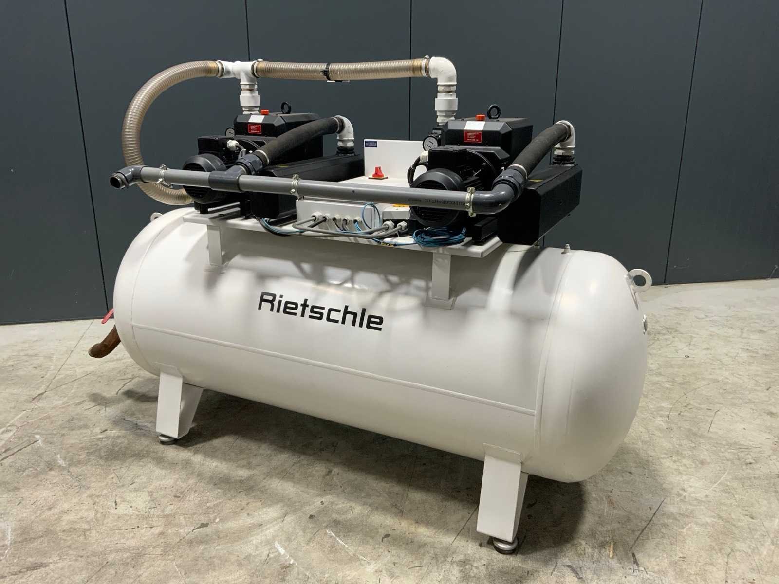 Rietschle vacuumsysteem met 2x Zephyr vacuümpompen capaciteit: 100 m3/h per stuk. Voorzien van buffertank inhoud: 1000 liter. Merk: Rietschle Type: VLR 100 Bouwjaar: 2007 Nominale capaciteit: 200m³/hr Totale afmeting L: 2500mm Totale afmeting Breedte: 900mm Totale afmeting Hoogte: 1600mm