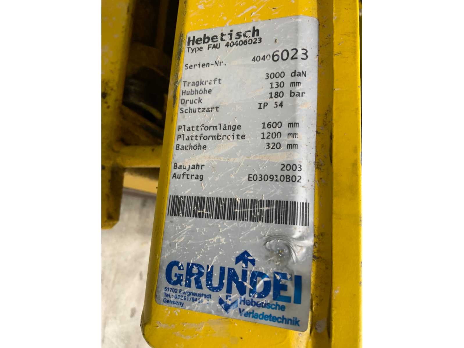 Maximaal gewicht: 3000 kg. Plateau afmetingen: 1600 x 1200mm. Voorzien van hydrauliek. Merk: Grundei Bouwjaar: 2003 Plateau afm. l: 1600mm Plateau afm. b: 1200mm Capaciteit.: 3000kg Totale afmeting L: 1600mm Totale afmeting Breedte: 1200mm Totale afmeting Hoogte: 480mm