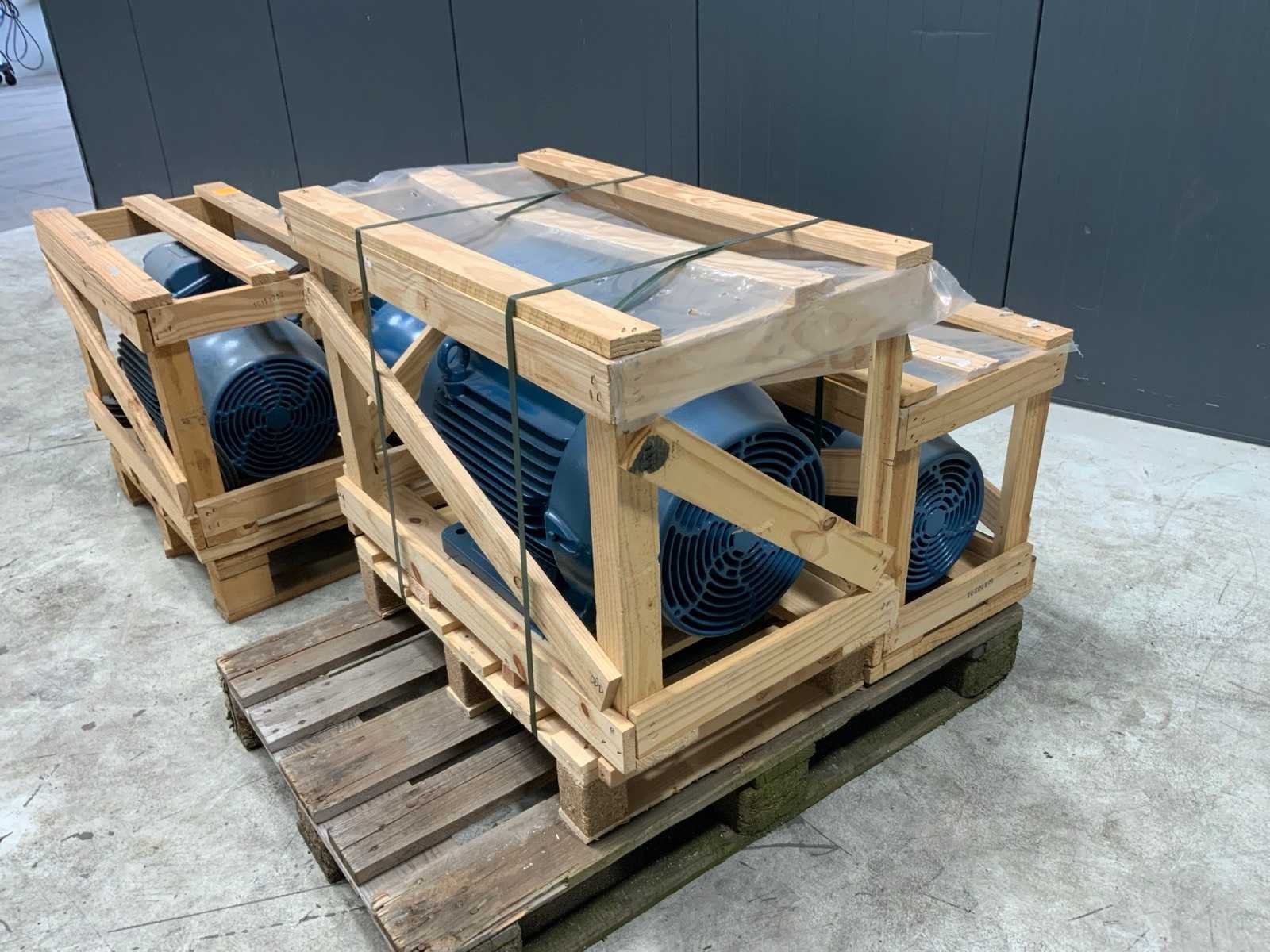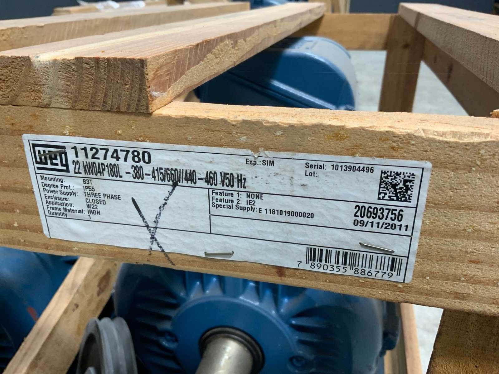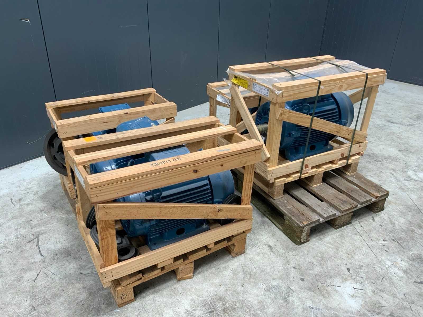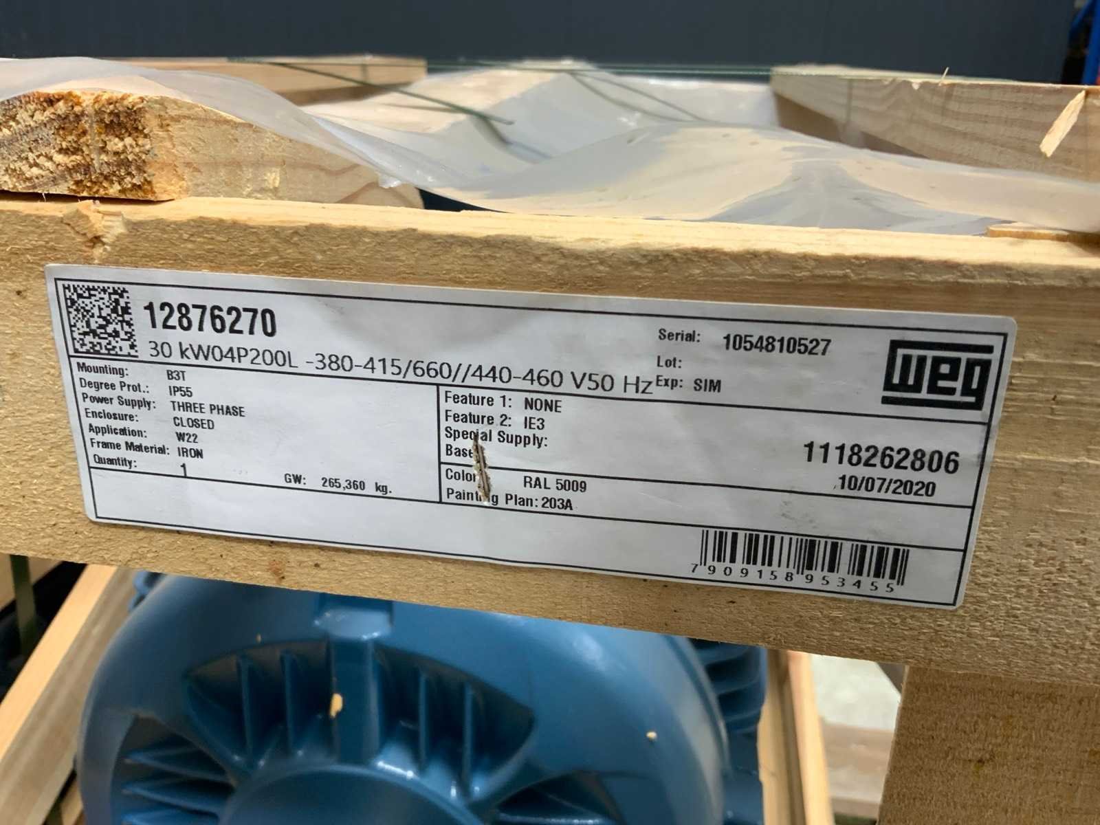 Ongebruikt in omkisting. Bestaand uit: 30kW, 30kW, 22kW, 15kW, 11kW. Merk: WEG