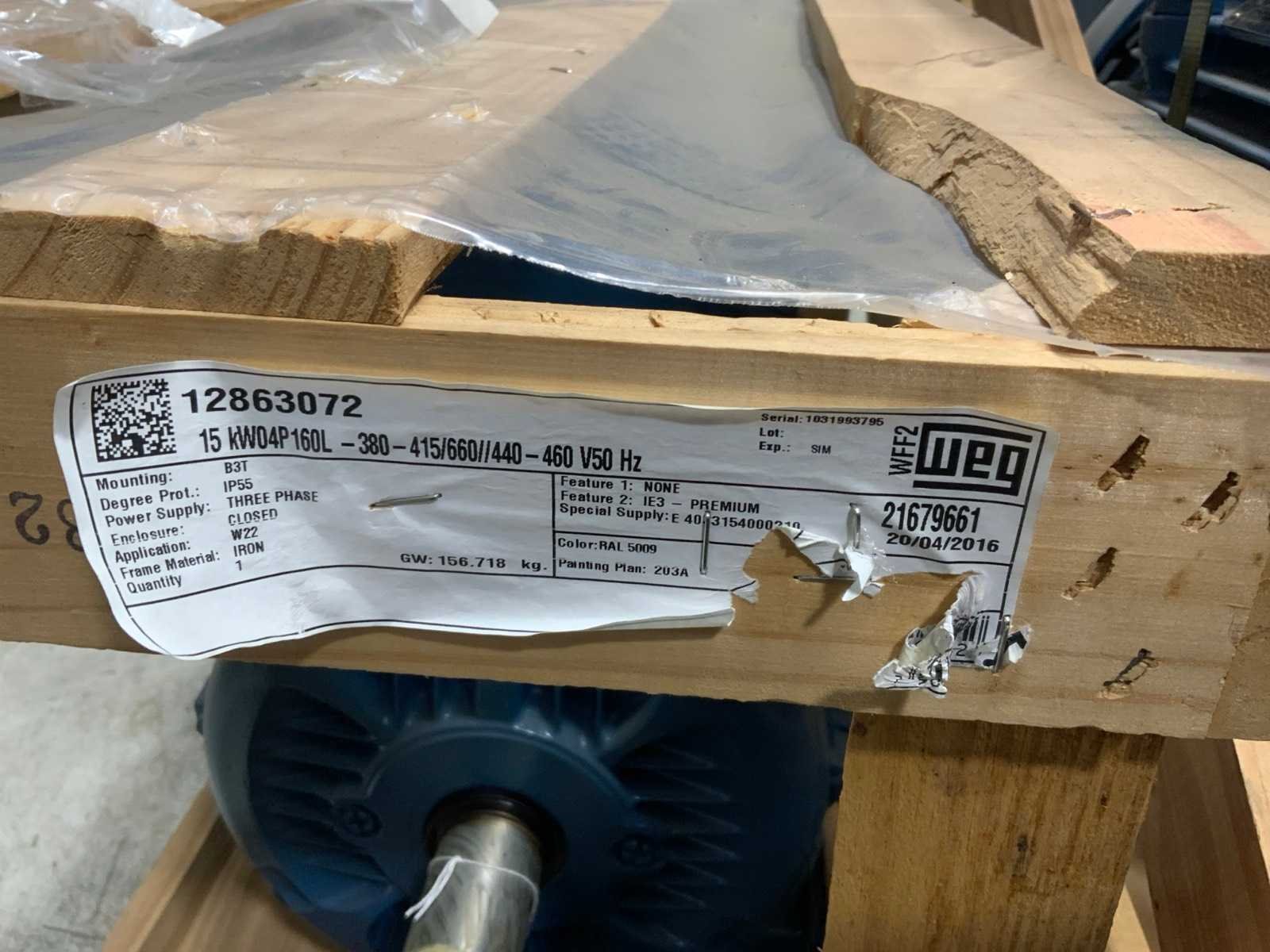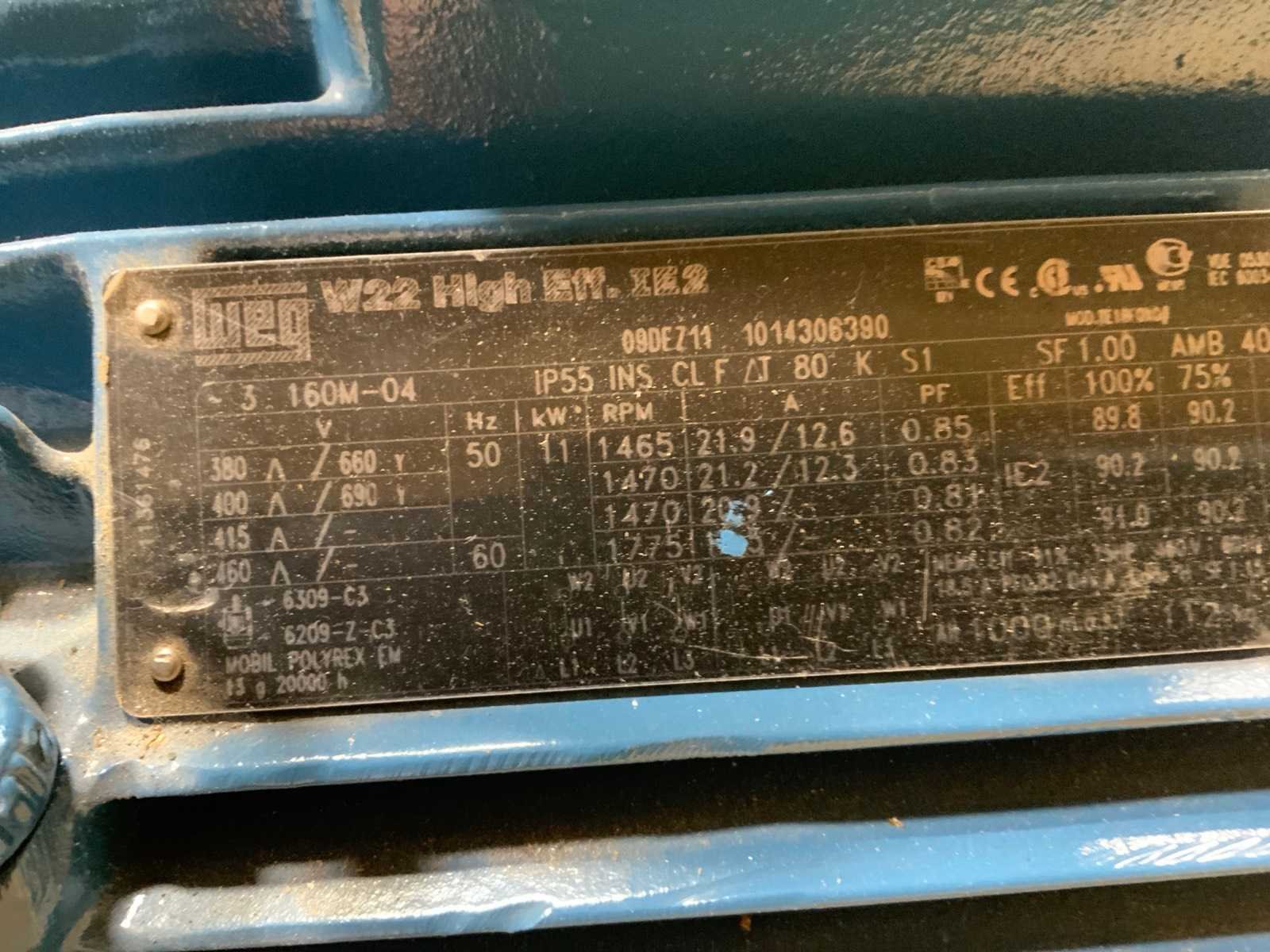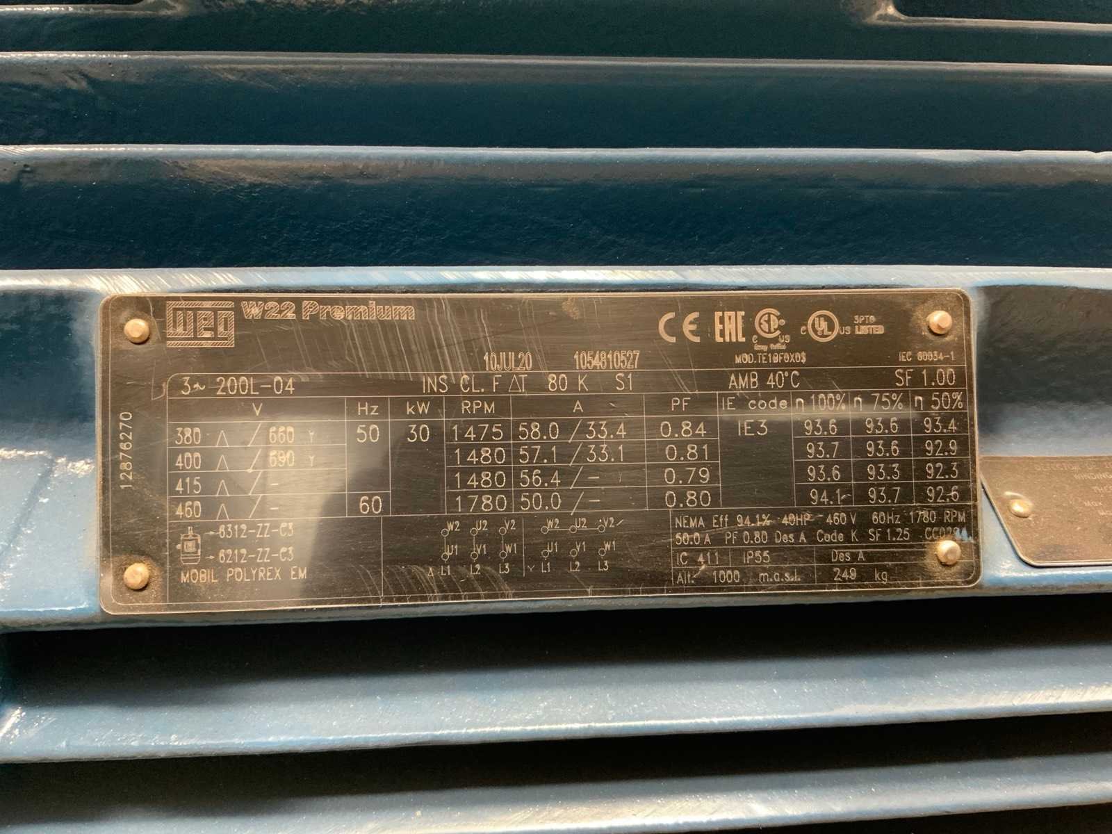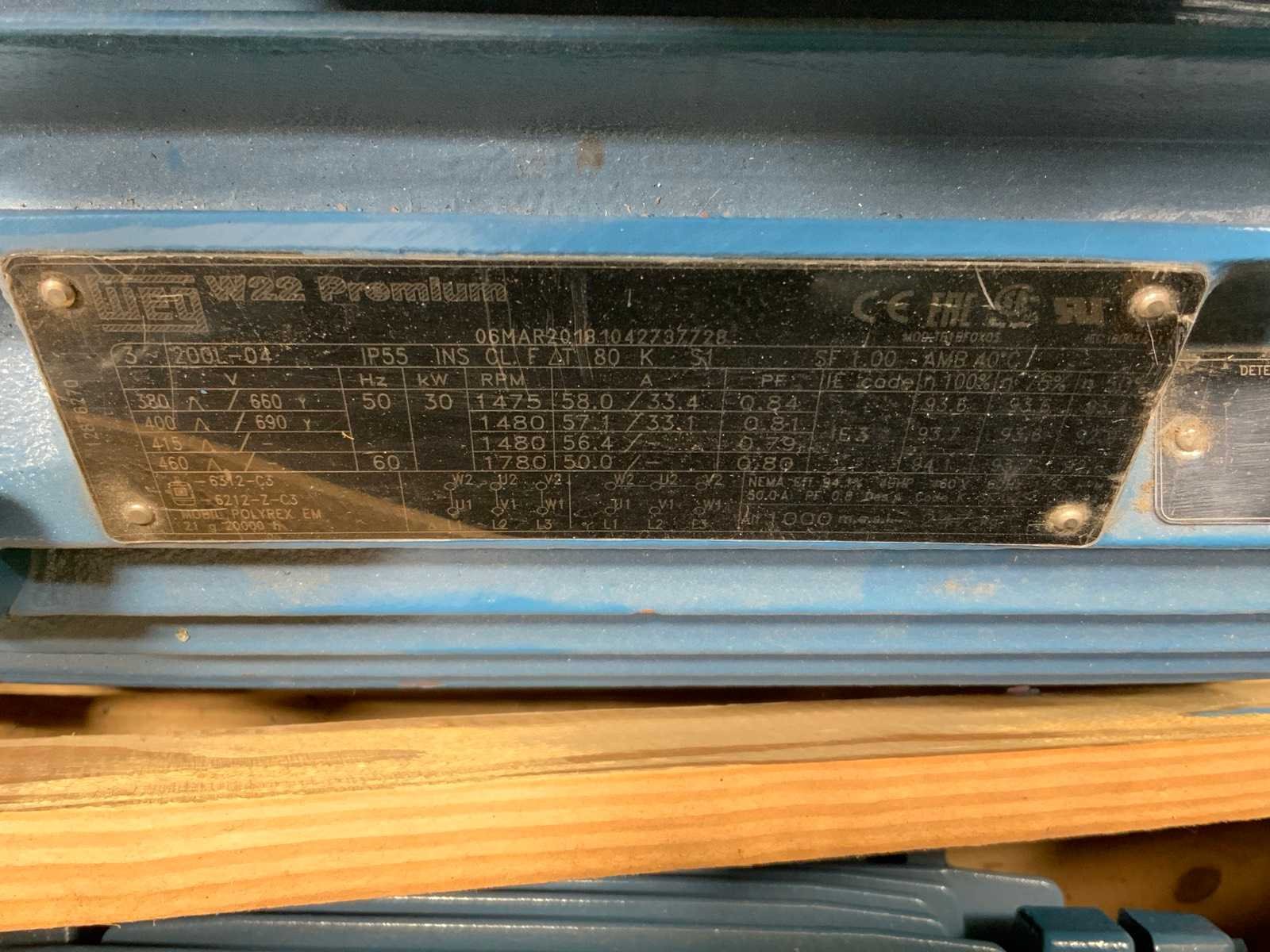 Ongebruikt in omkisting. Bestaand uit: 30kW, 30kW, 22kW, 15kW, 11kW. Merk: WEG