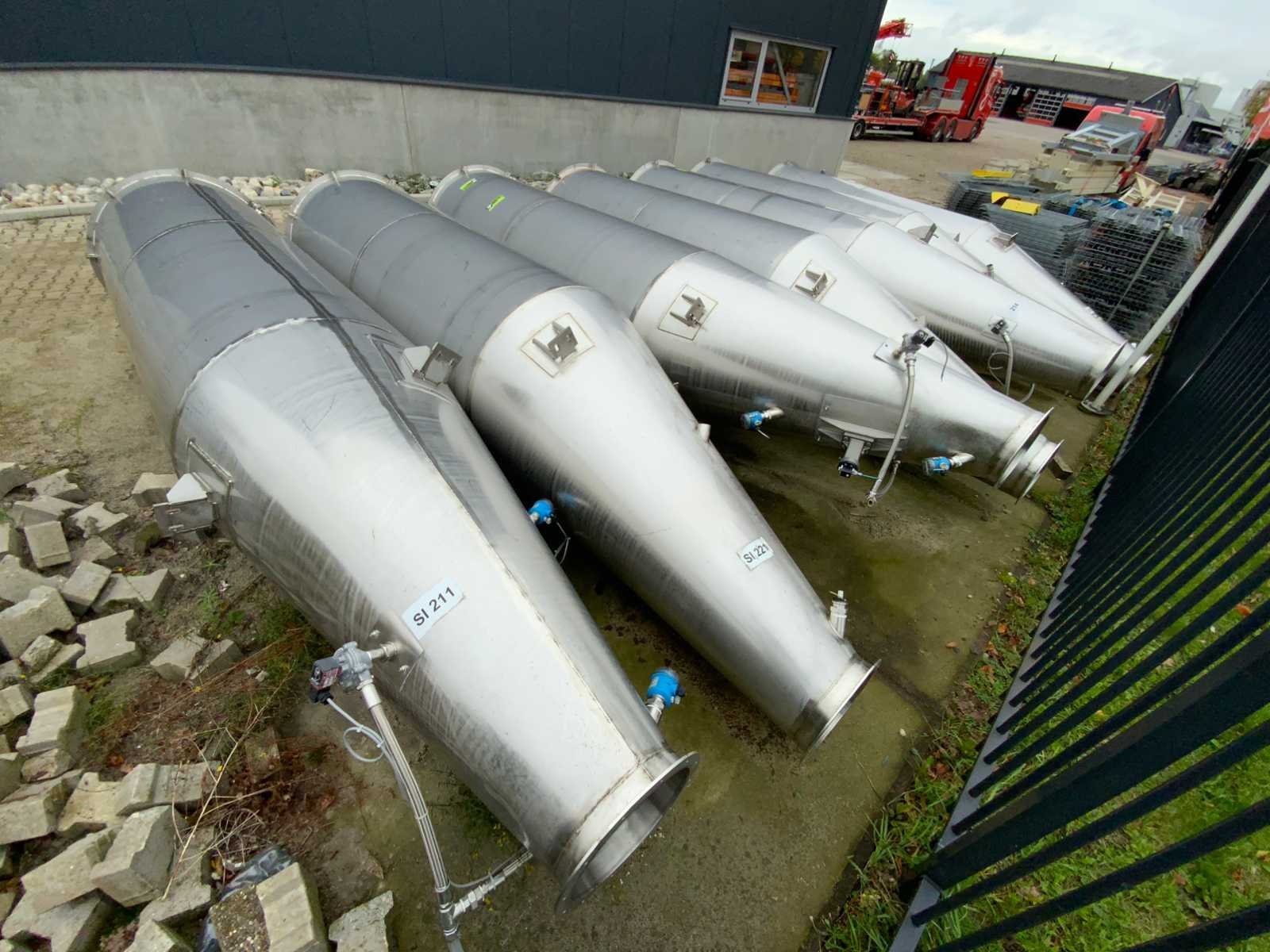 Silo afmeting: 270cm lengte. Conisch afmeting: 180cm. Totale lengte: 450cm. Onder diameter flens: 420mm. Boven diameter: 400mm. Totale afmeting L: 4500mm Totale afmeting Breedte: 1050mm Totale afmeting Hoogte: 1050mm