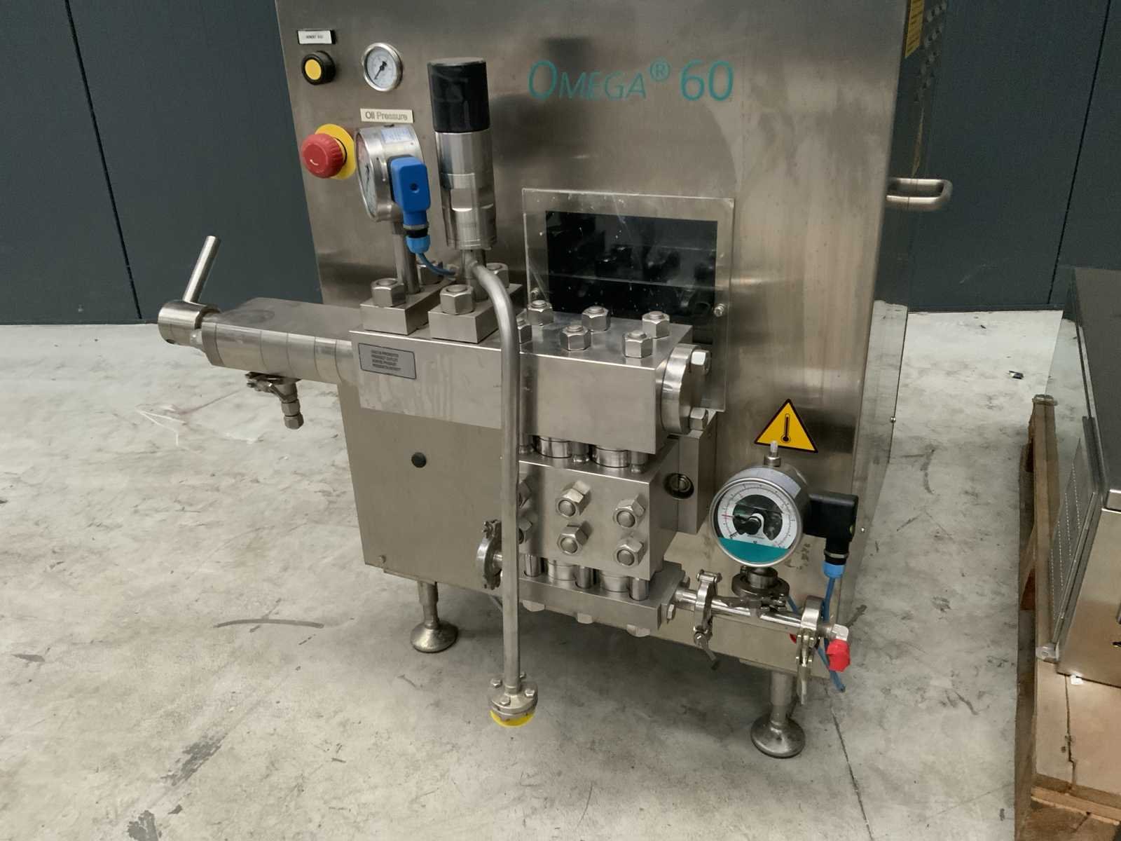 Maximale werkdruk: 700 bar. Capaciteit rated flow: 60 liter/uur. Met bijhorende besturingskast. Merk: Netzsch Totale afmeting Hoogte: 1300mm Totale afmeting Breedte: 950mm Max. druk: 700bar Bouwjaar: 2013 Type: Omega 60 Totale afmeting L: 900mm