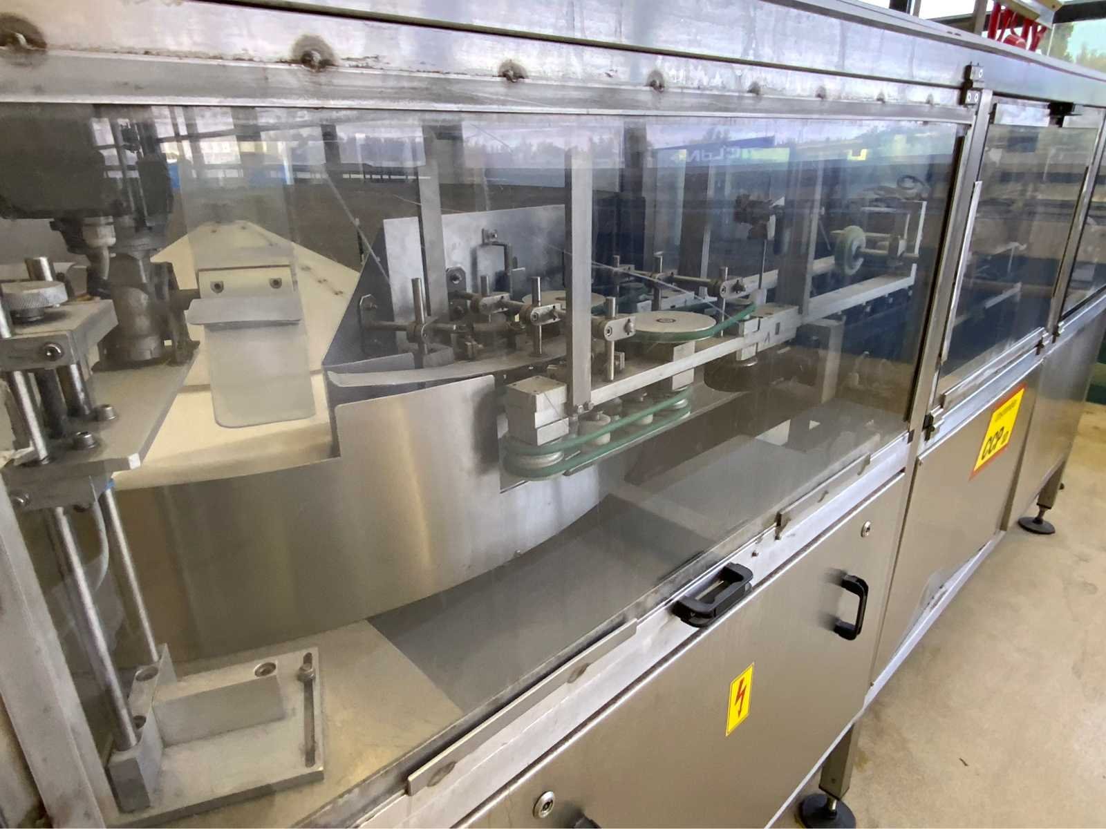 Fles opzet machine. Pallet met flessen word gekanteld in de machine, vervolgens worden de flessen een voor een rechtop gezet op een rij op de transportband. Pallet flessen ter indicatie. Type: CCP 1D Totale afmeting L: 1700mm Totale afmeting Breedte: 4100mm Totale afmeting Hoogte: 1900mm
