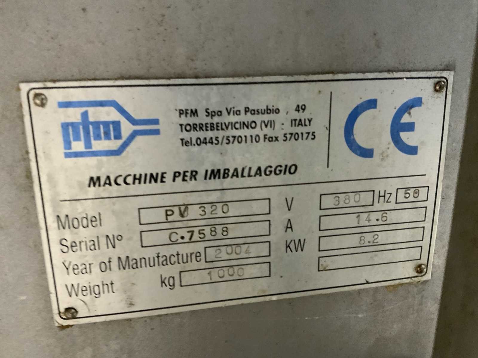 Merk: PFM Packaging Machinery Type: PV 320 Bouwjaar: 2004 Aansluiting: 380V Eigen gewicht: 1000kg Totale afmeting L: 1650mm Totale afmeting Breedte: 1900mm Totale afmeting Hoogte: 1850mm