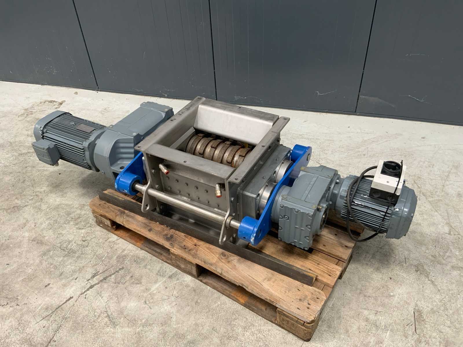Voorzien van 2x SEW aandrijving 5,5kW / 1,5kW * Doorval afmeting: 480 x 480mm * Binnenmaat: 200 x 450mm * Merk: SEW Totale afmeting L: 1450mm Totale afmeting Breedte: 650mm Totale afmeting Hoogte: 400mm
