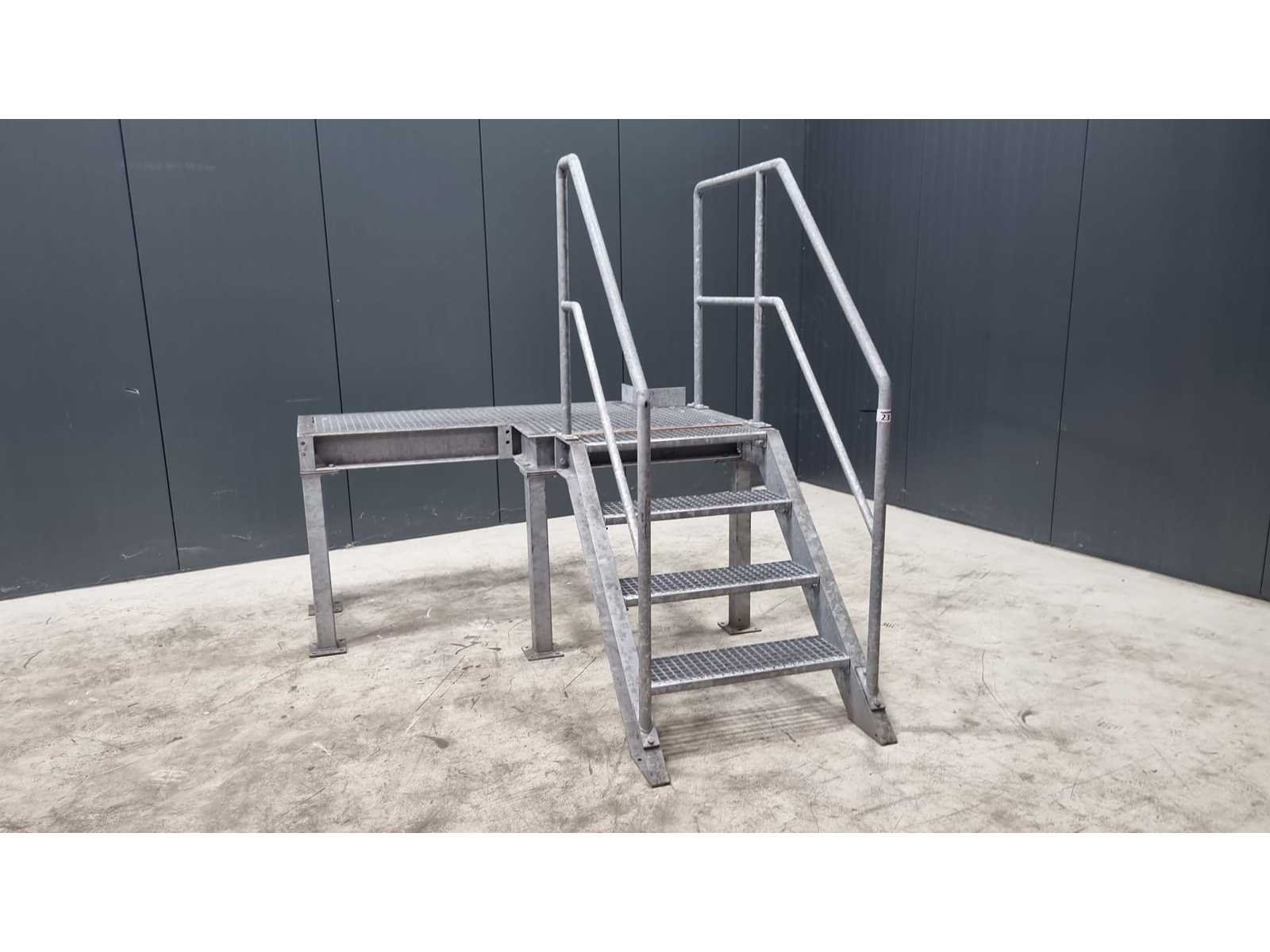 Gegalvaniseerd staal. Hoogte bordes: 1000mm. Totale afmeting L: 1980mm Totale afmeting Breedte: 2330mm Totale afmeting Hoogte: 2110mm
