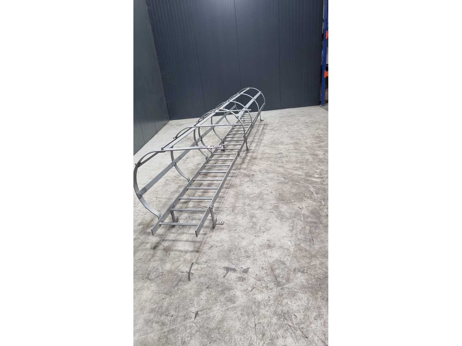 Aantal tredes: 22. Trap hoogte: ca 5400m. Lengte: 5400cm Breedte: 760cm Hoogte: 950cm Materiaal: Gegalvaniseerd staal