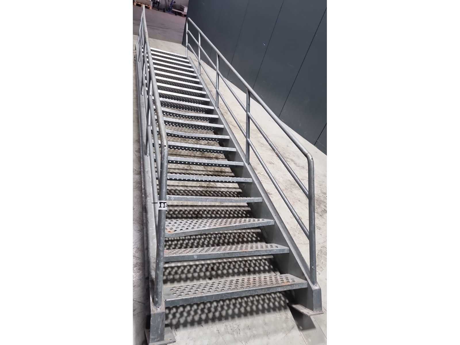 Aantal tredes: 20. Trap hoogte: ca 4000mm. Tree breedte: 1000mm. Lengte: 6350cm Breedte: 1160cm Hoogte: 950cm Materiaal: Gegalvaniseerd Staal