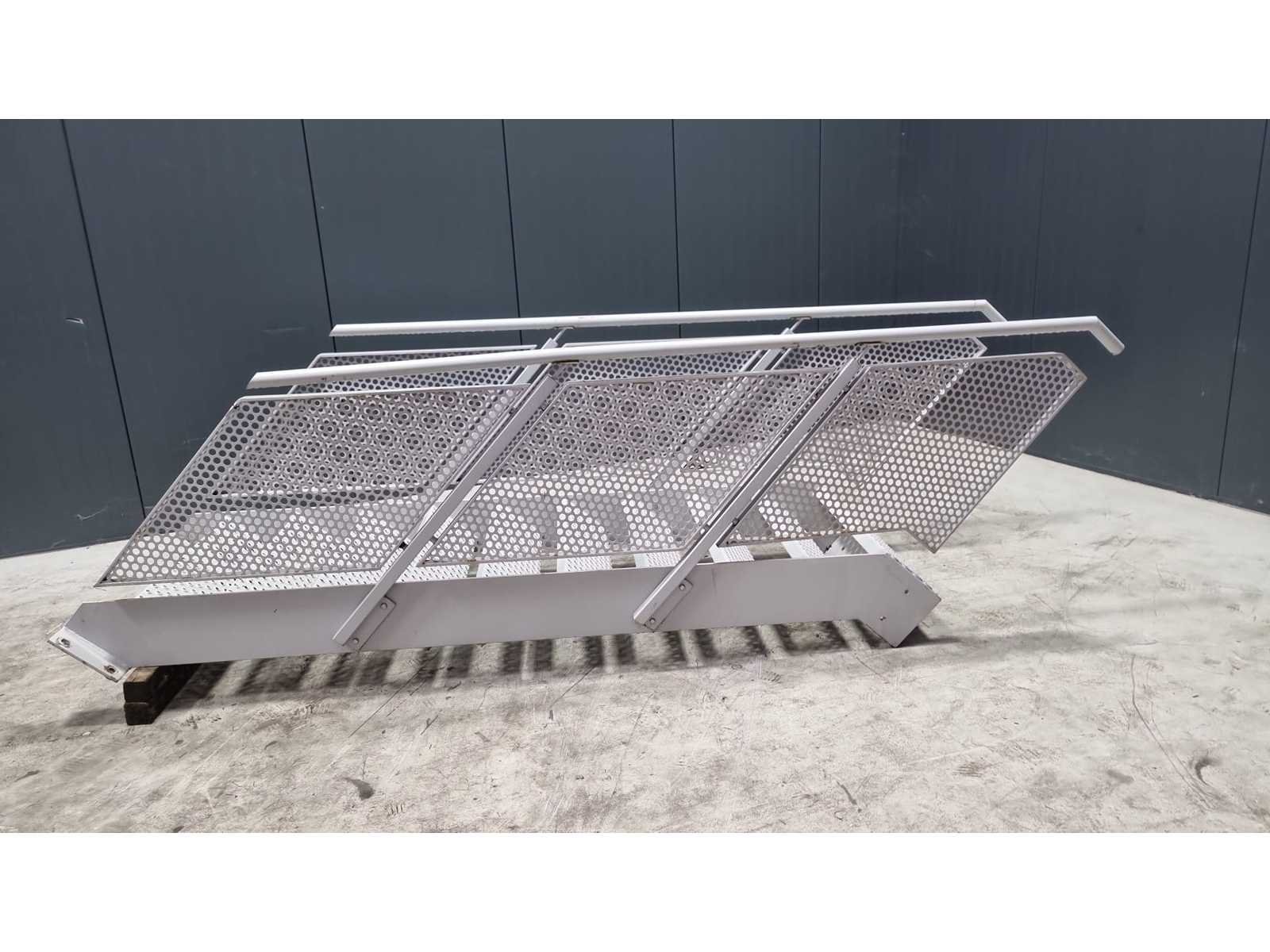 Aantal tredes: 10. Trap hoogte: ca 2000mm. Lengte: 3500cm Breedte: 1100cm Hoogte: 1070cm Materiaal: Gegalvaniseerd Staal