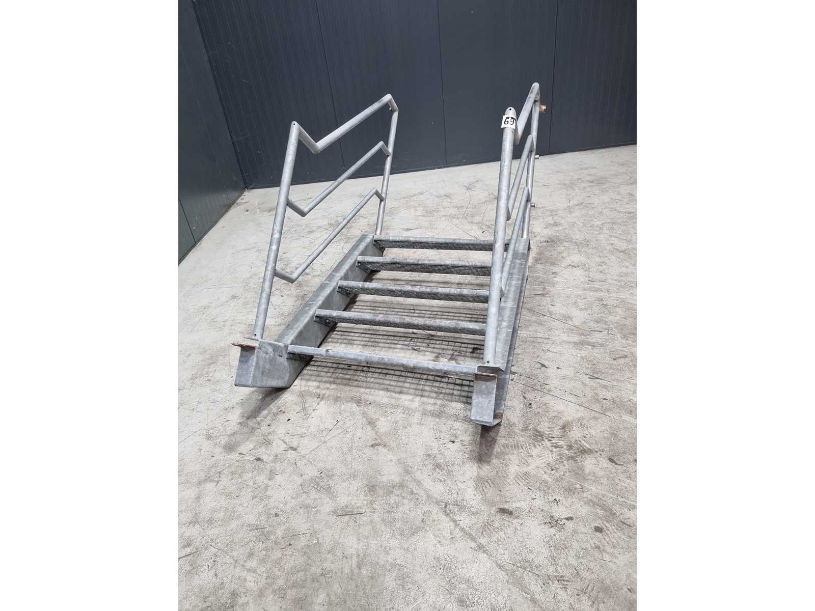 Aantal tredes: 5. Trap hoogte: ca 1000mm. Lengte: 2650cm Breedte: 1100cm Hoogte: 1100cm Materiaal: Gegalvaniseerd Staal