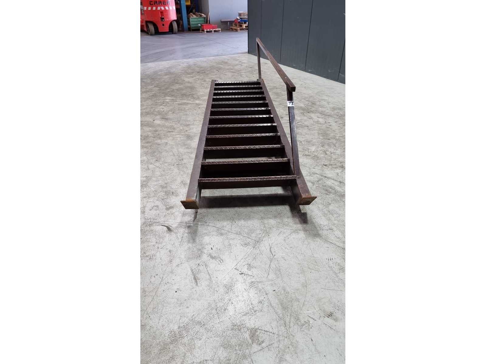 Aantal tredes: 12. Trap hoogte: ca 2500mm. Lengte: 3970cm Breedte: 920cm Hoogte: 780cm Materiaal: Staal
