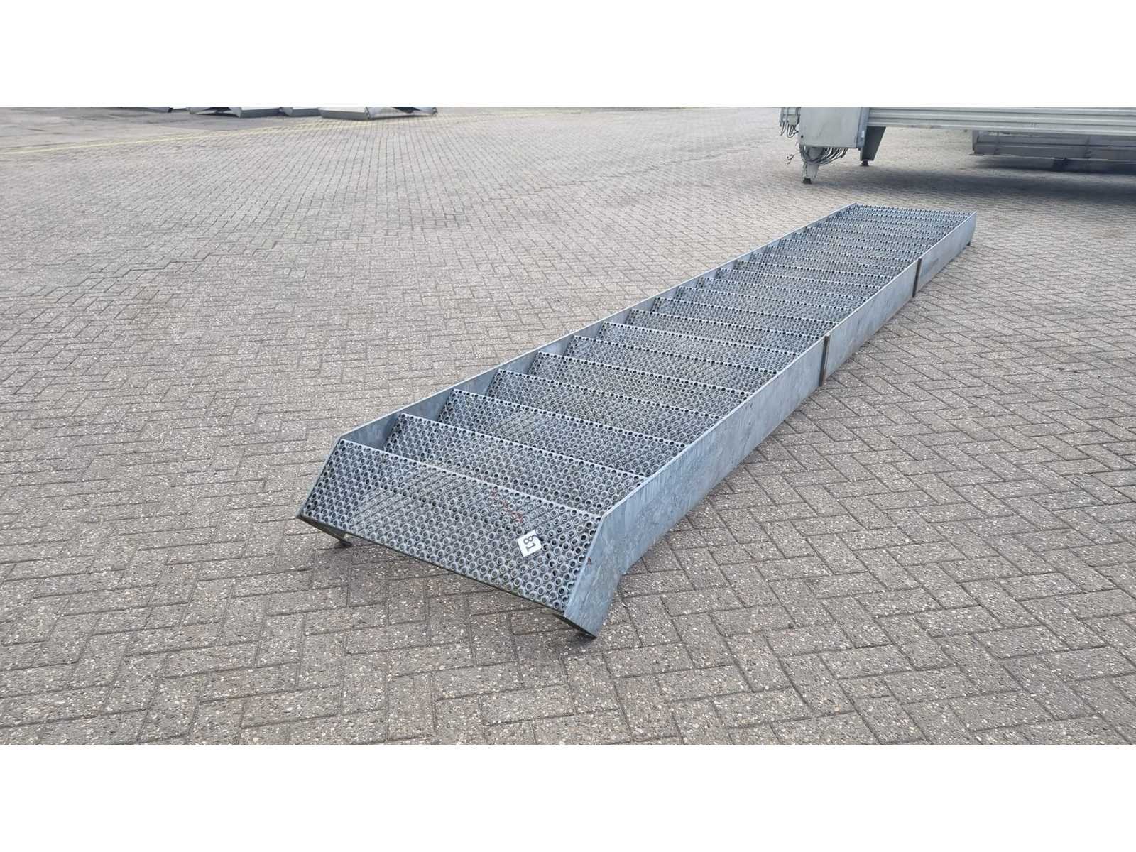 Aantal tredes: 23. Trap hoogte: ca 4500mm. Lengte: 6500cm Breedte: 950cm Hoogte: 360cm Materiaal: Gegalvaniseerd Staal