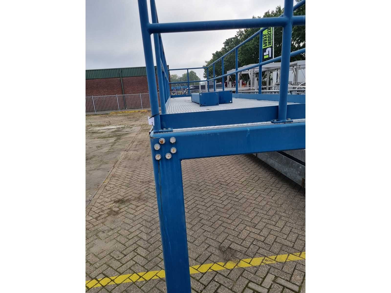 Gegalvaniseerd staal. Hoogte bordes: 1800mm. Totale afmeting L: 8000mm Totale afmeting Breedte: 1800mm Totale afmeting Hoogte: 2900mm