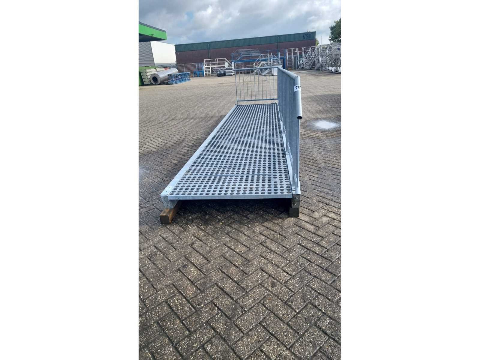 Gegalvaniseerd staal. Hoogte bordes: 200mm. Totale afmeting L: 6400mm Totale afmeting Breedte: 1400mm Totale afmeting Hoogte: 1220mm