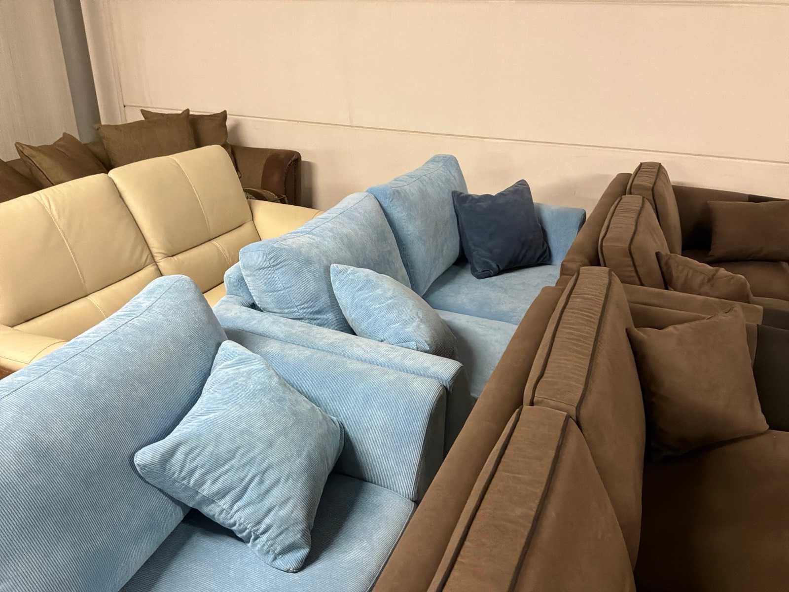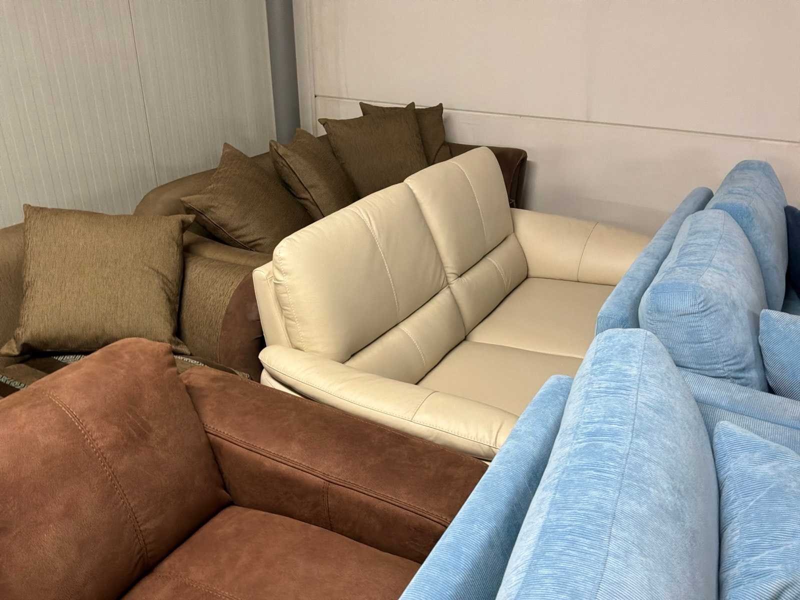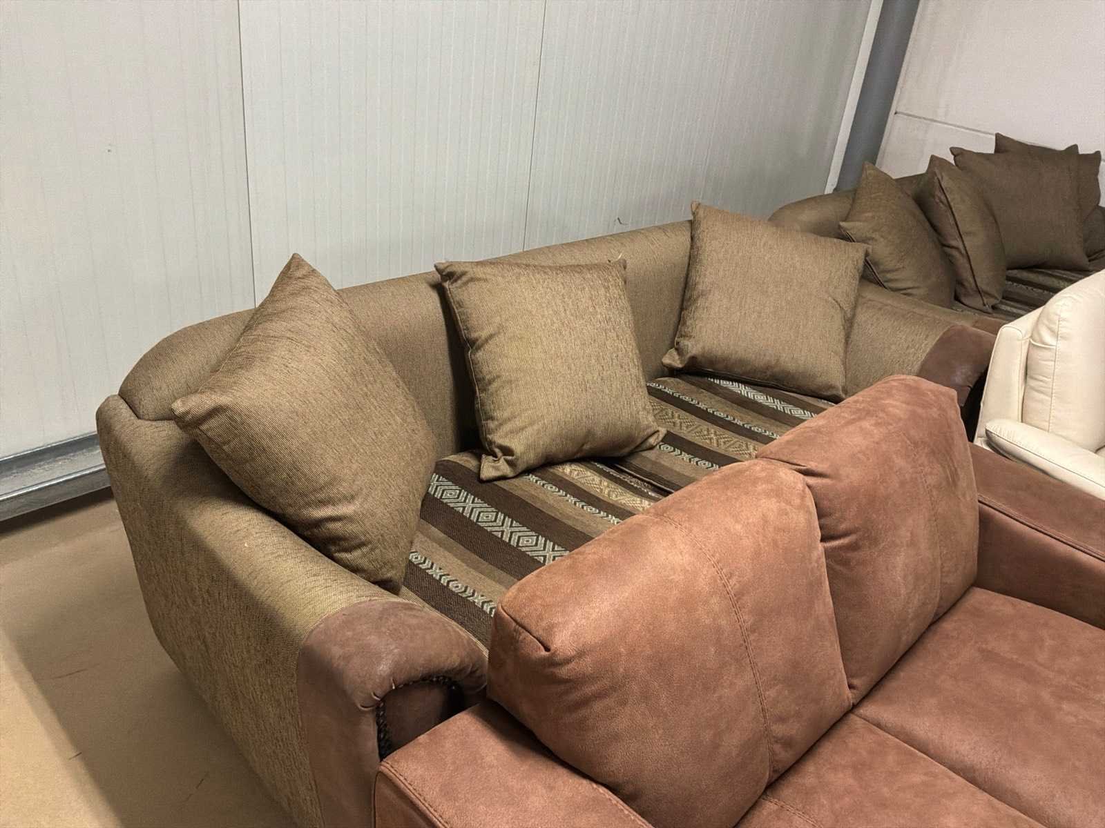 Partij diverse stoffen en leren bankstellen (32x)